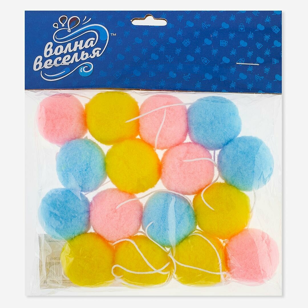 Купить Гирлянда-подвеска Плюшевые помпончики, Яркий микс, 3 см*16 шт, 1 упак.