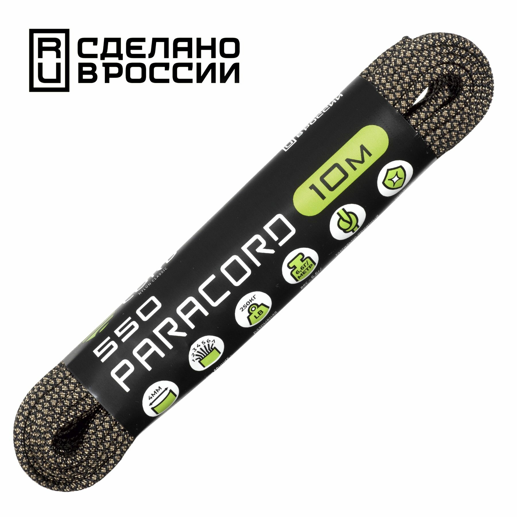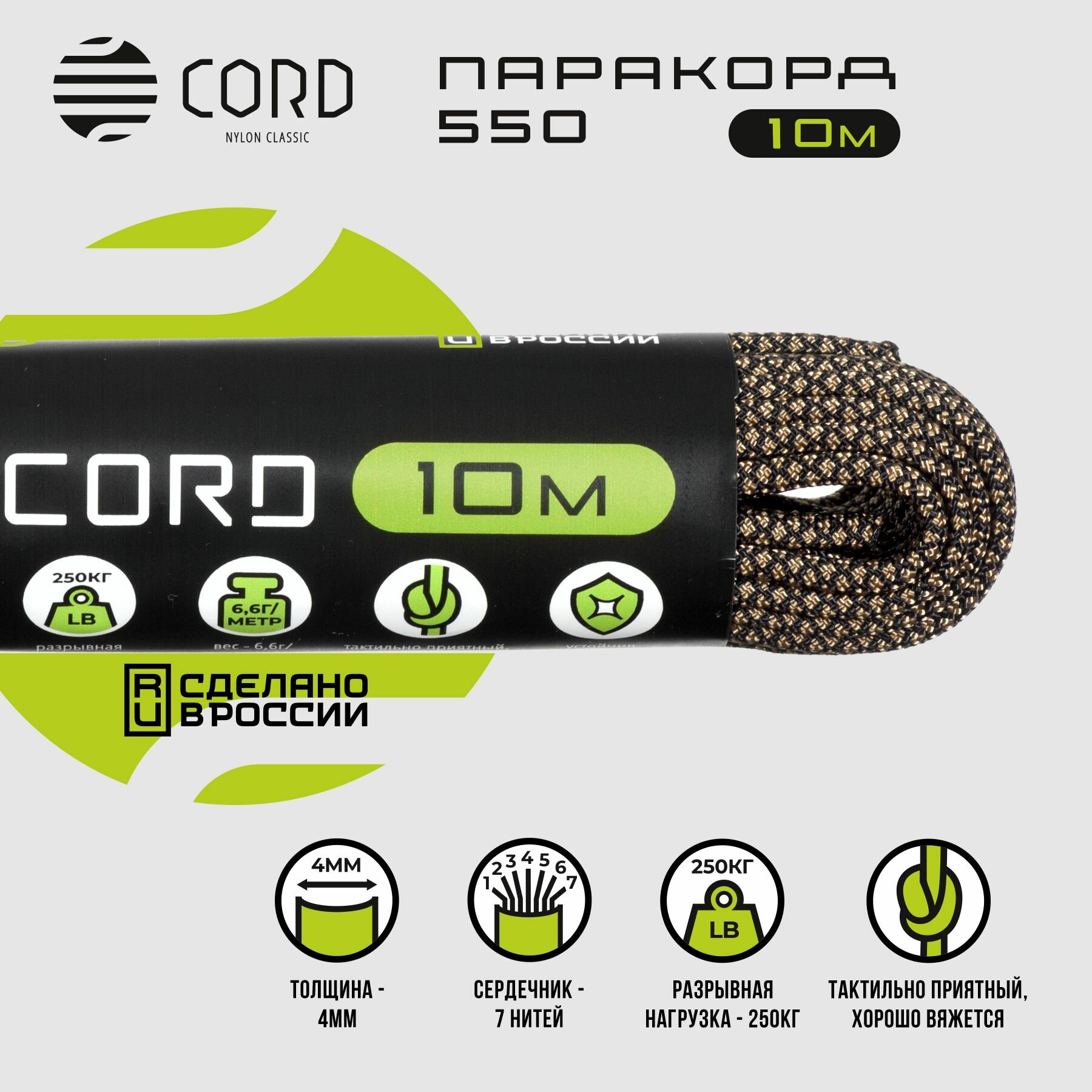 Паракорд 550 CORD RUS nylon 10м 4мм COYOTE