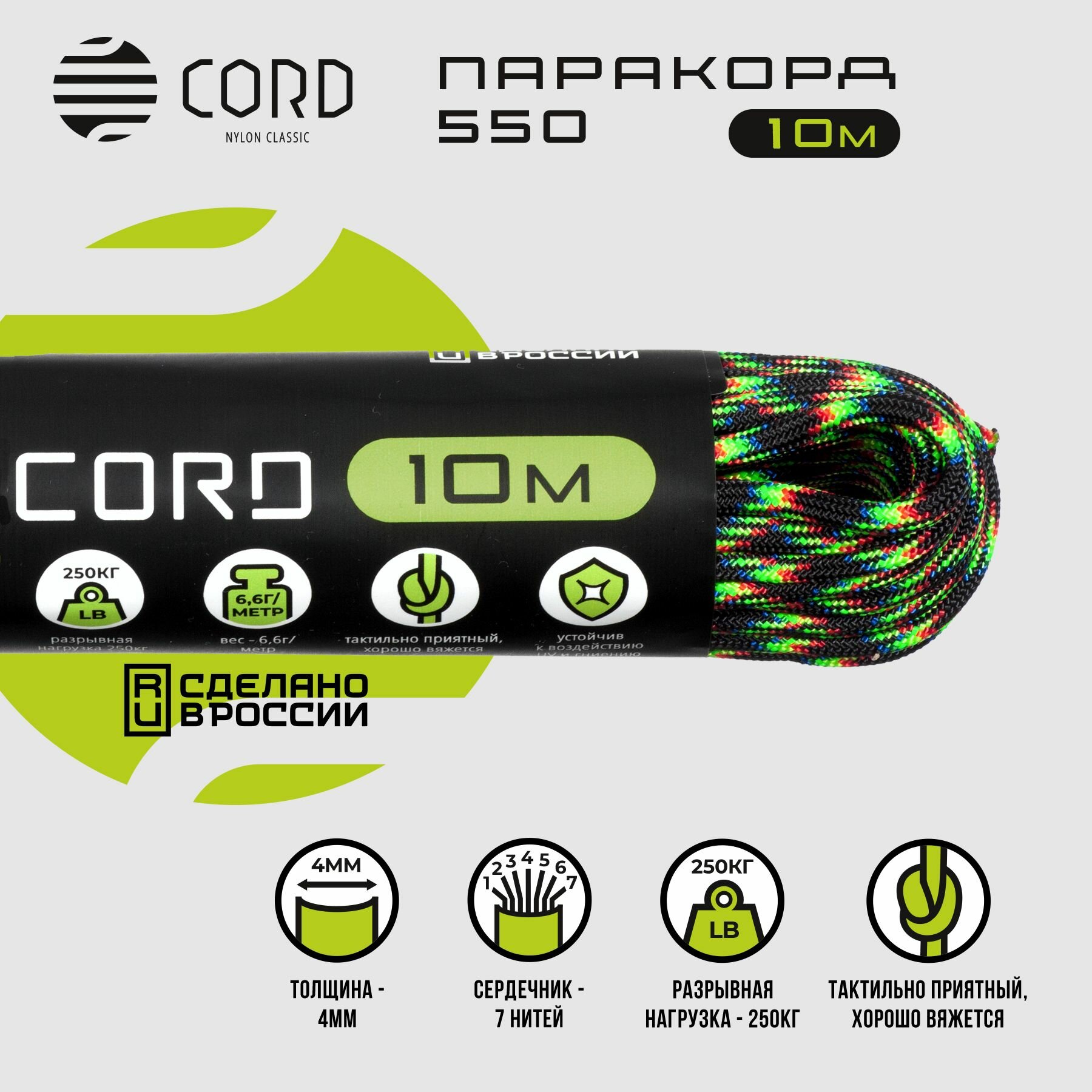 Паракорд 550 CORD RUS nylon 10м 4мм ULTRAGREEN
