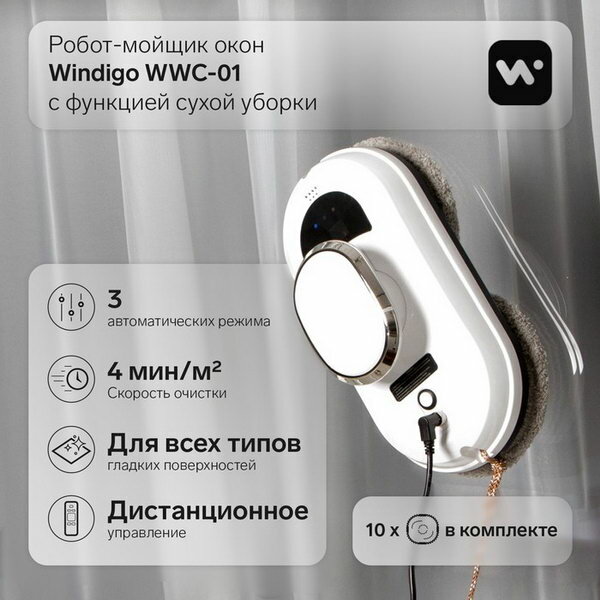 Робот-мойщик окон WWC-01, 80 Вт, сухая уборка, 4 мин/м2, АКБ, белый интересное: