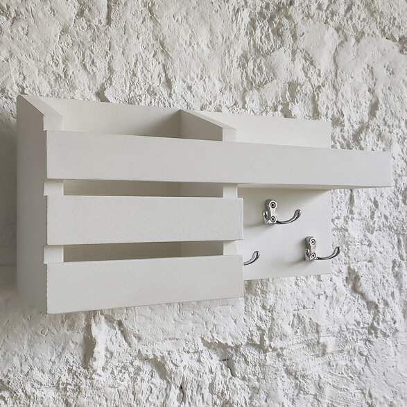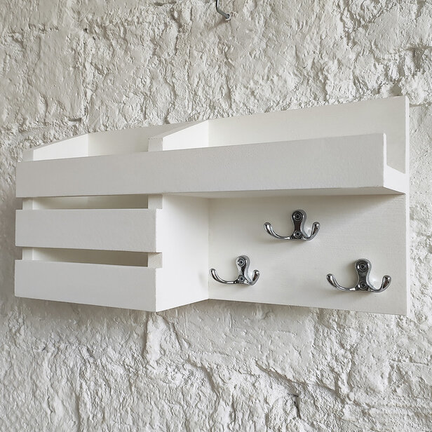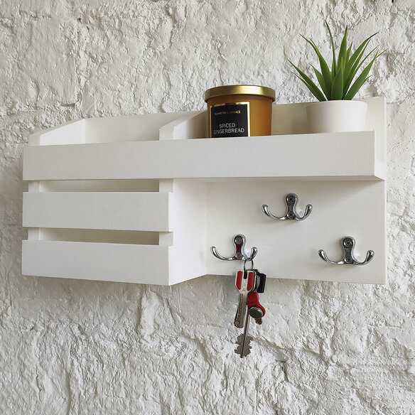 Купить Ключница настенная белая из дерева с крючками и полкой на стену