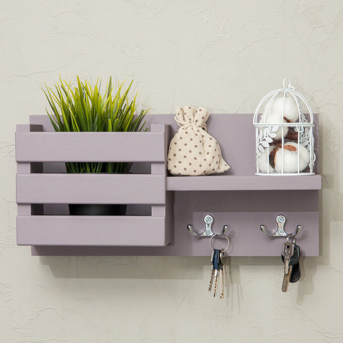 Ключница с крючками и полкой на стену интересное: