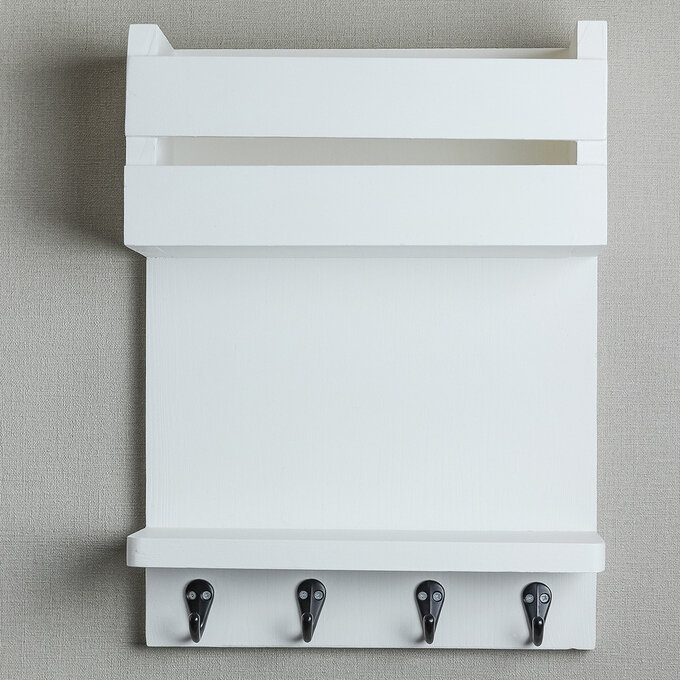 Купить Ключница настенная белая с полкой из дерева в прихожую для ключей