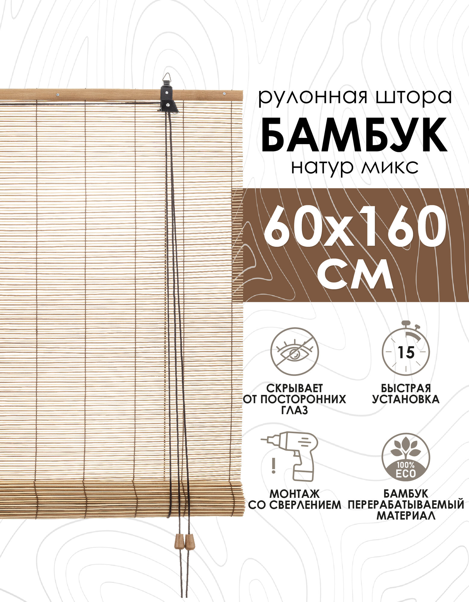 СохранитьРулонные шторы из бамбука, натур-микс 60х160 см интересное: