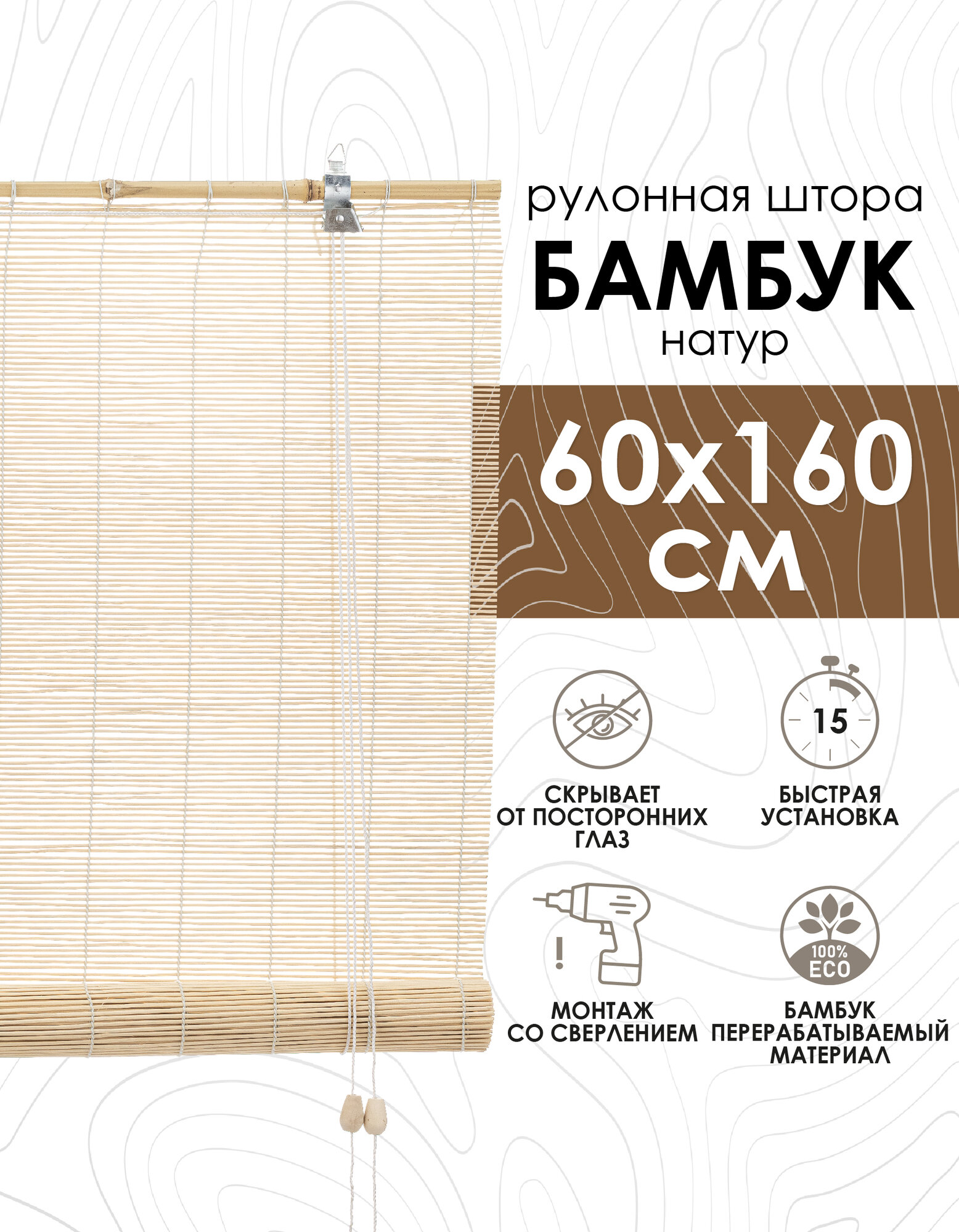 СохранитьШтора рулонная Эскар 60х160см бамбук натуральный интересное: