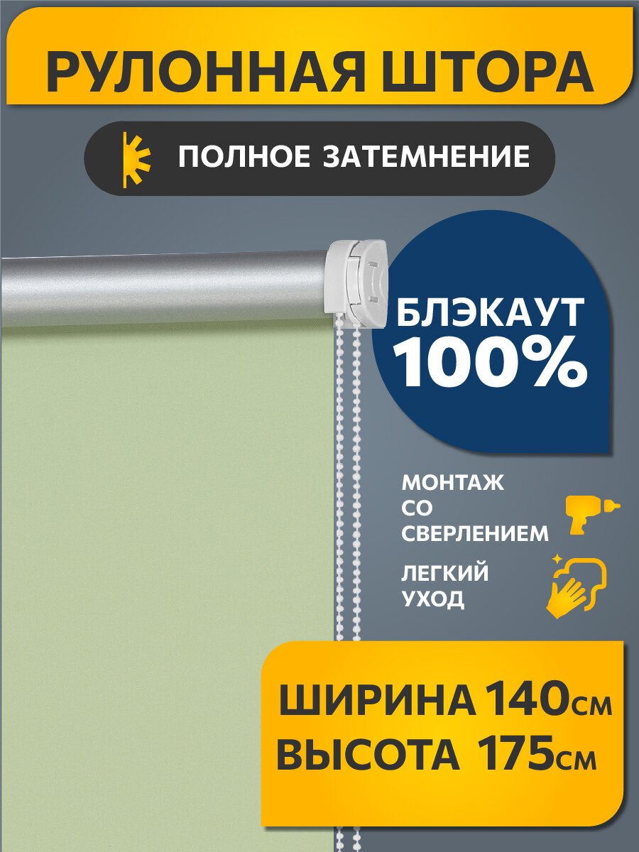 Рулонные шторы BLACKOUT / блэкаут 140 см х 175 см Весенний зеленый Плайн DECOFEST (Стандарт)