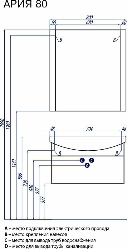Зеркало Акватон Ария 80 белое 1A141902AA010