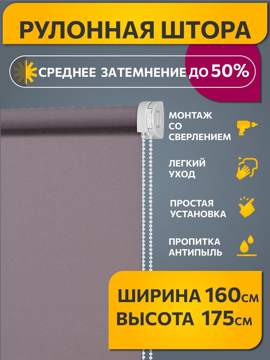 Купить Рулонные шторы однотонные Плайн Лаванда DECOFEST 160 см на 175 см, жалюзи на окна