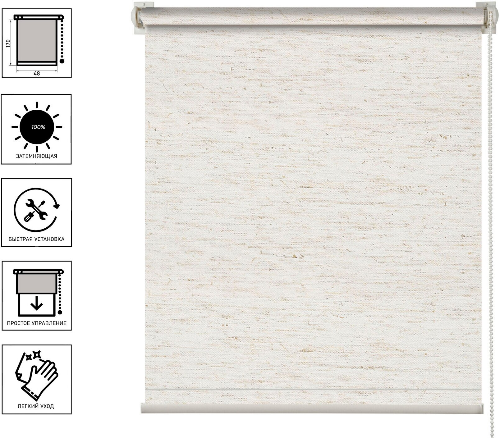 Штора рулонная универсальная LINE Termo Блэкаут бежевый 48х170 см светозащита 100%