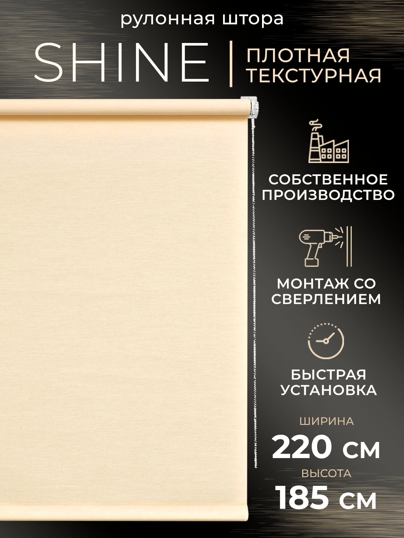 Купить Рулонная штора LM DECOR "Шайн" 07 светло-бежевый 220х185 см по ткани
