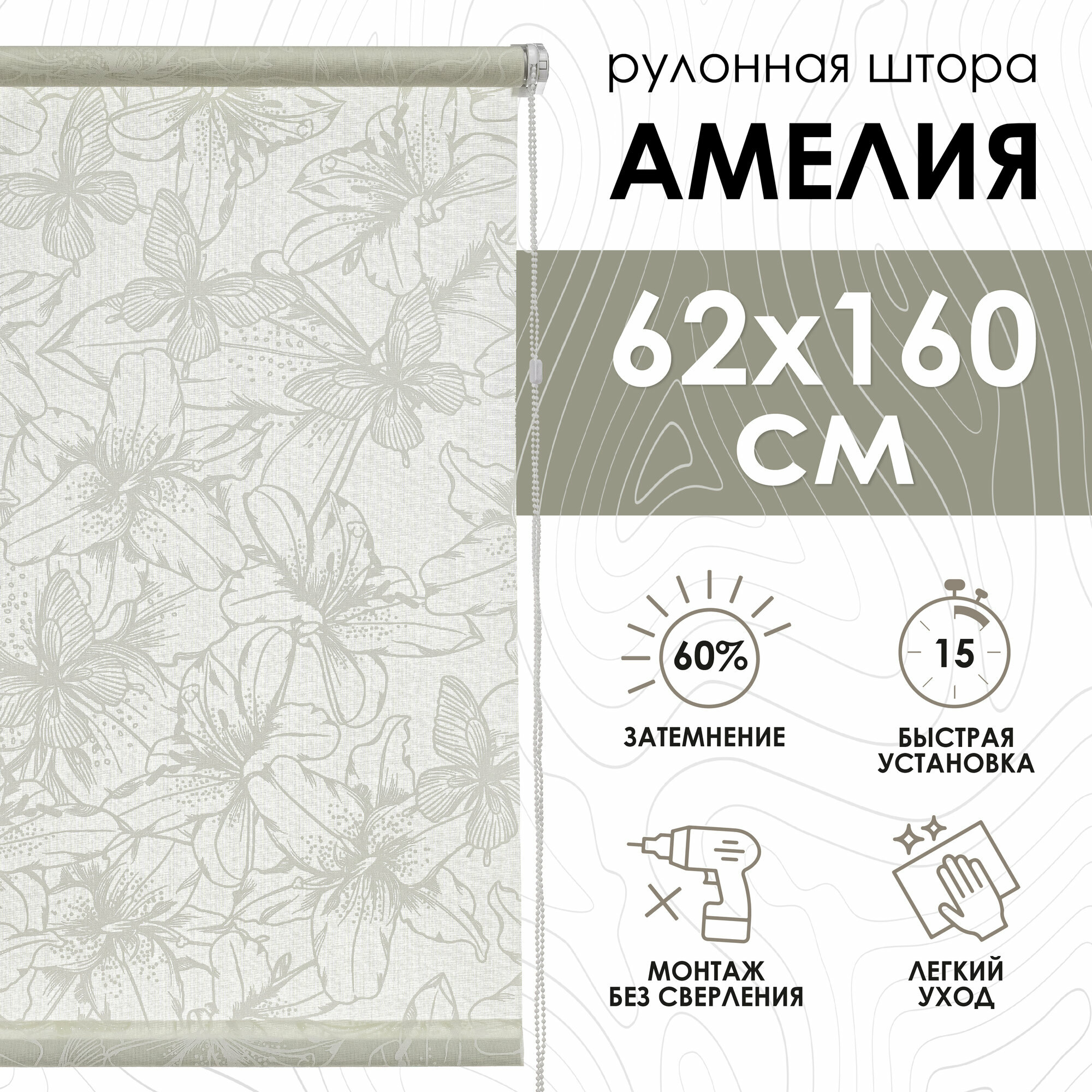 СохранитьРулонные шторы Амелия, белый, 62х160 см интересное: