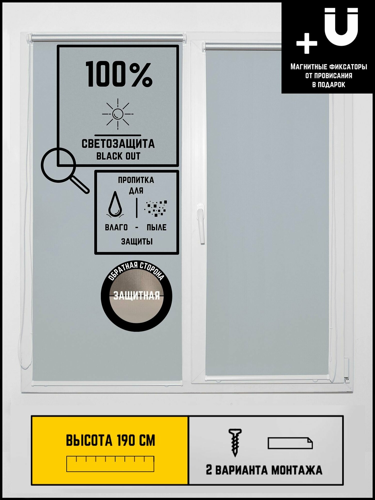 СохранитьРулонные шторы Серый блэкаут на окна без сверления 64 на 190 интересное: