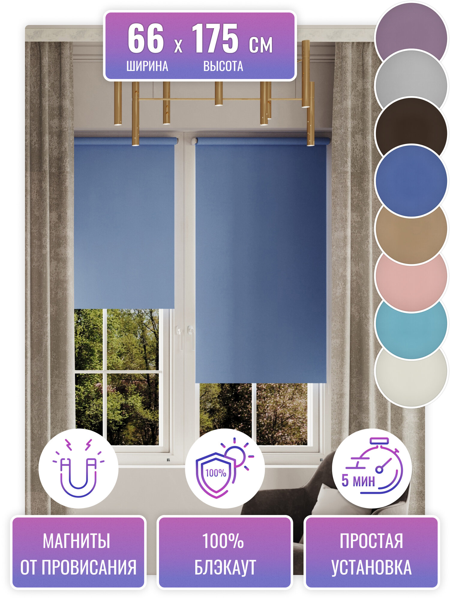 Купить Рулонная штора DOMLEGRAND блэкаут 66 на 175 см синий / Рулонные шторы на окна блэкаут / Жалюзи на окна / Шторы не блэкаут