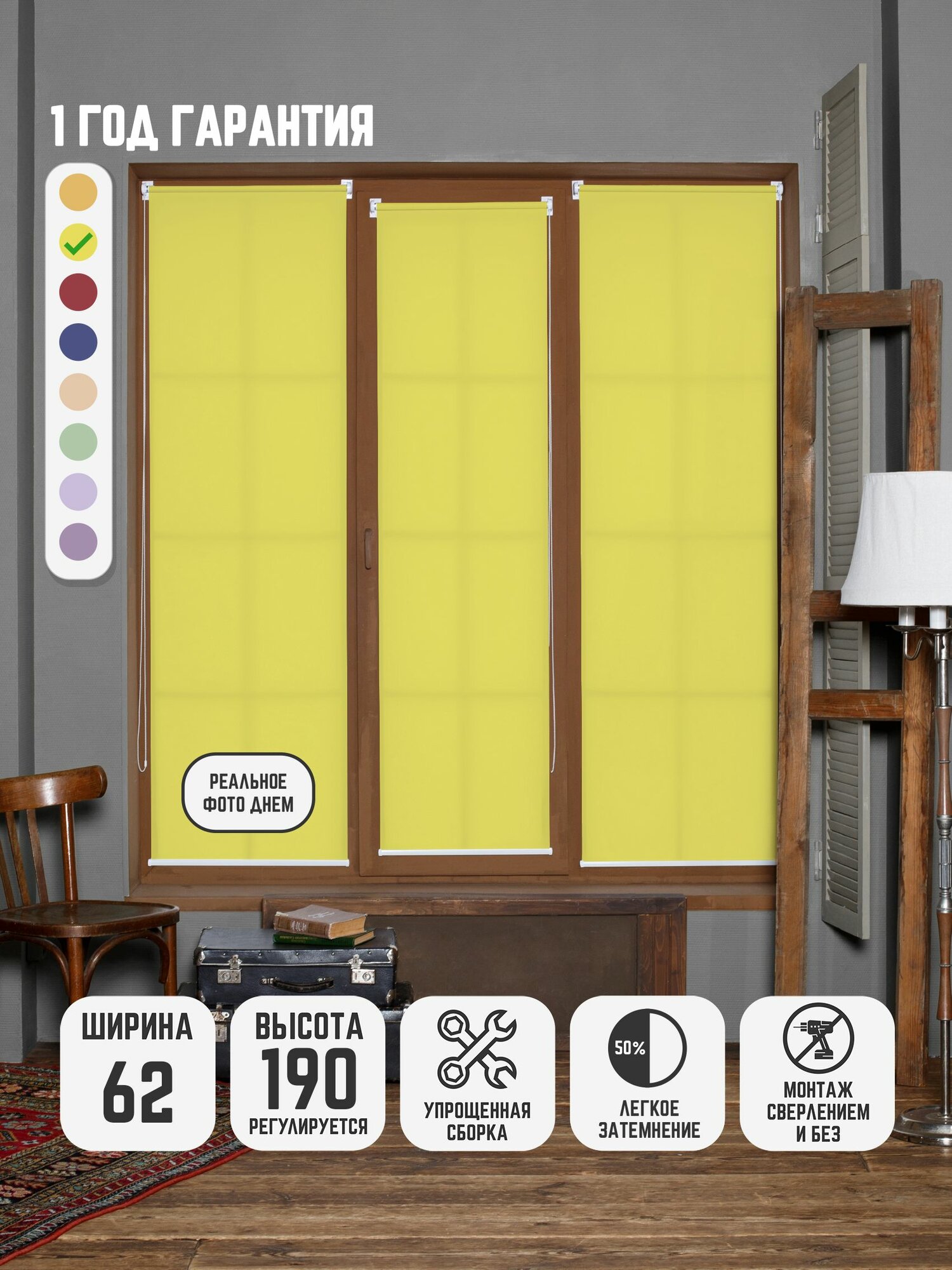 Ниже Вы можете прочитать отзывы на Рулонные шторы Юни Желтый не блэкаут на окна без сверления 62 на 190, ознакомится с подробными характеристиками, посмотреть интересные обзоры и фотографии на Рулонные шторы Юни Желтый не блэкаут на окна без сверления 62 на 190.