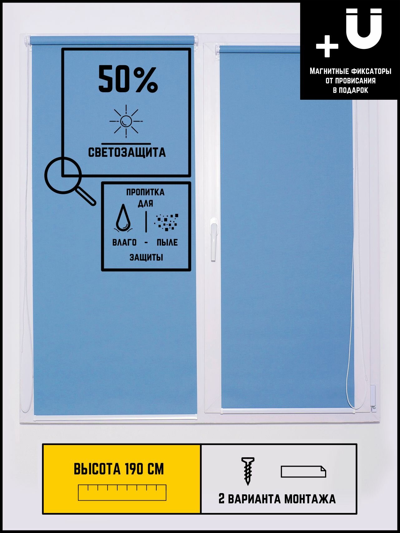 | Комплектация | Труба с тканью - 1шт. Цепь управления - 1 шт. Соеденитель цепи управления - 1шт. Крышка нижняя боковая - 2 шт. Стальной утяжелитель - 1 шт. Ограничитель цепи управления - 1шт. Платформа для скотча - 2 шт. Скотч - 2 шт. Магнит - 2 шт. |