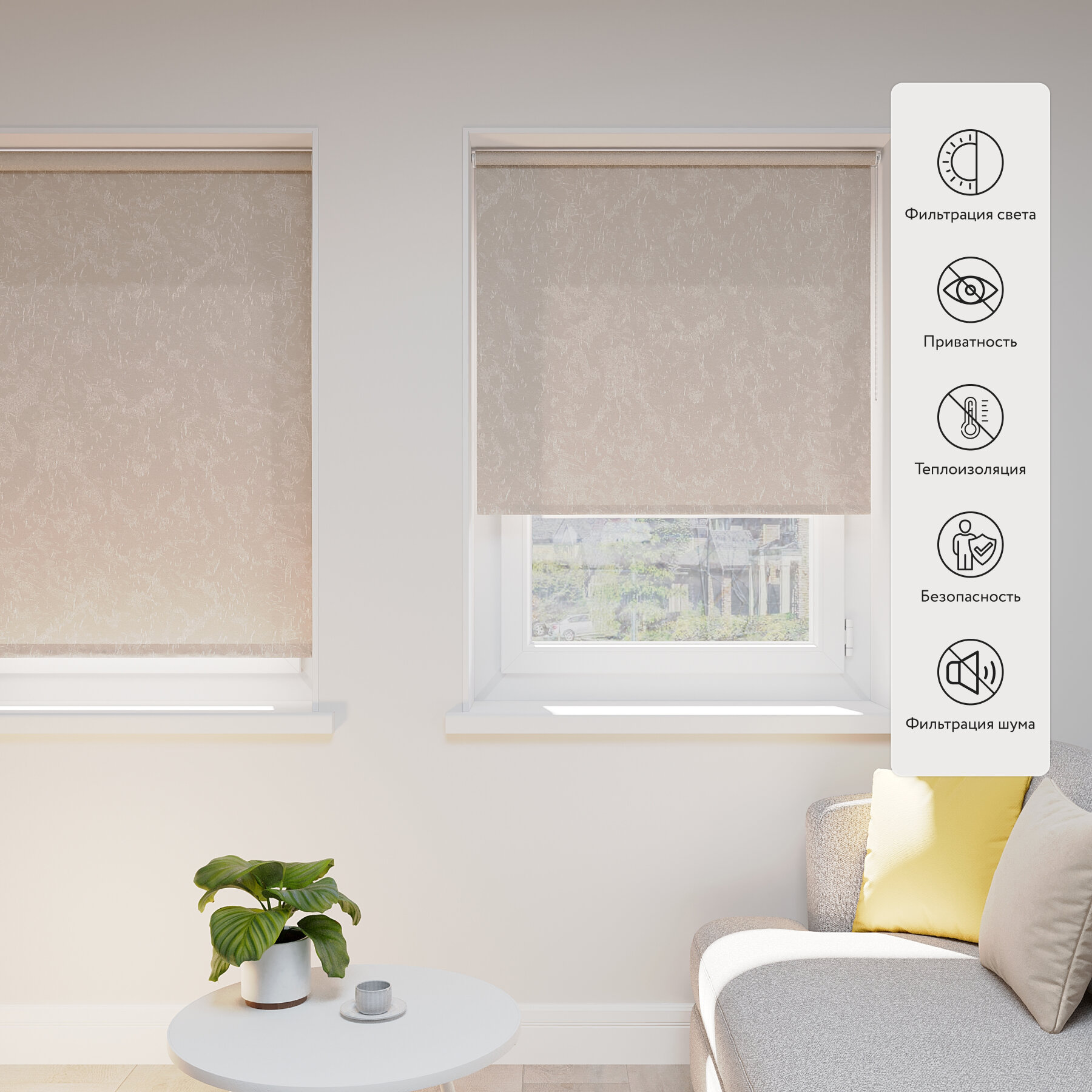 Рулонная штора LEGRAND стайл 98 на 175 бежево-серый / Рулонные шторы на окна не блэкаут / Жалюзи на окна / Шторы не блэкаут