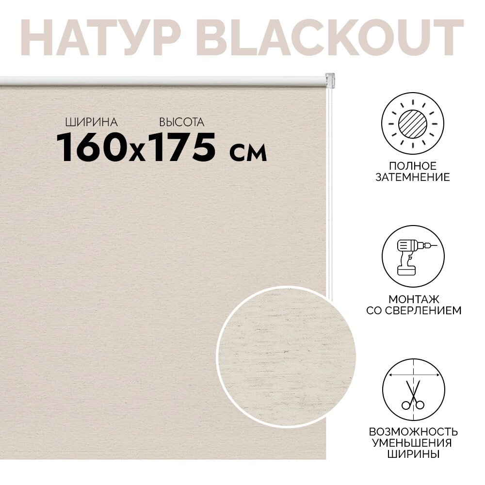 Рулонная штора светонепроницаемая Натур 140х175 см бежевая