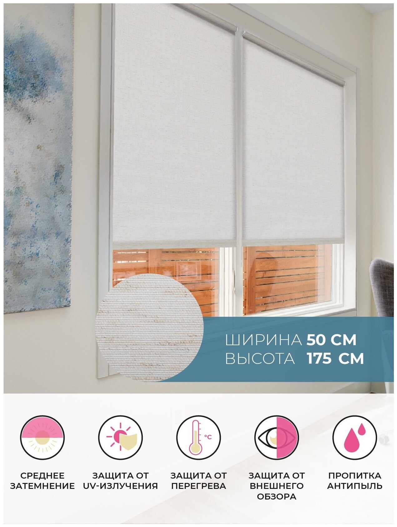 Рулонная штора Decofest Натур, 50 x 175 см