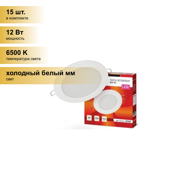 Купить (15 шт.) Светильник встраиваемый ASD/InHome светодиодный даунлайт RLP-VC 12W(960lm) 6500К 6K d145 белая (без пульсации) IP40 4530