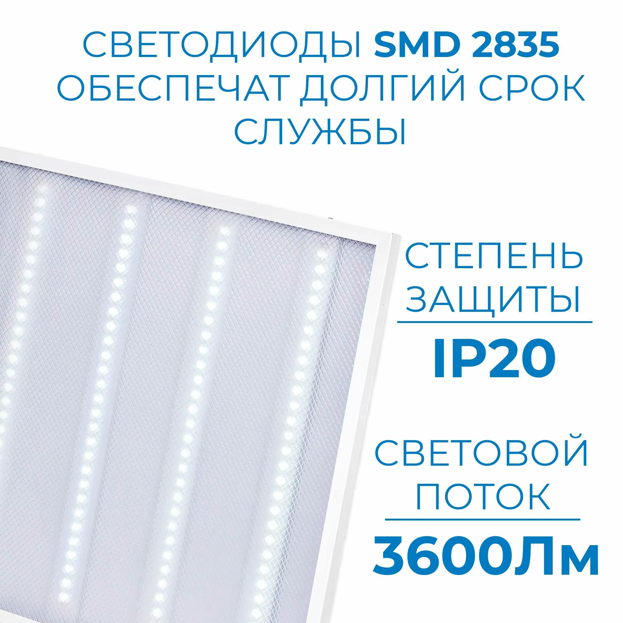 Светильник (LED) 36Вт 6500K 2800Лм встр/накл призм. 595х595х20мм интересное:
