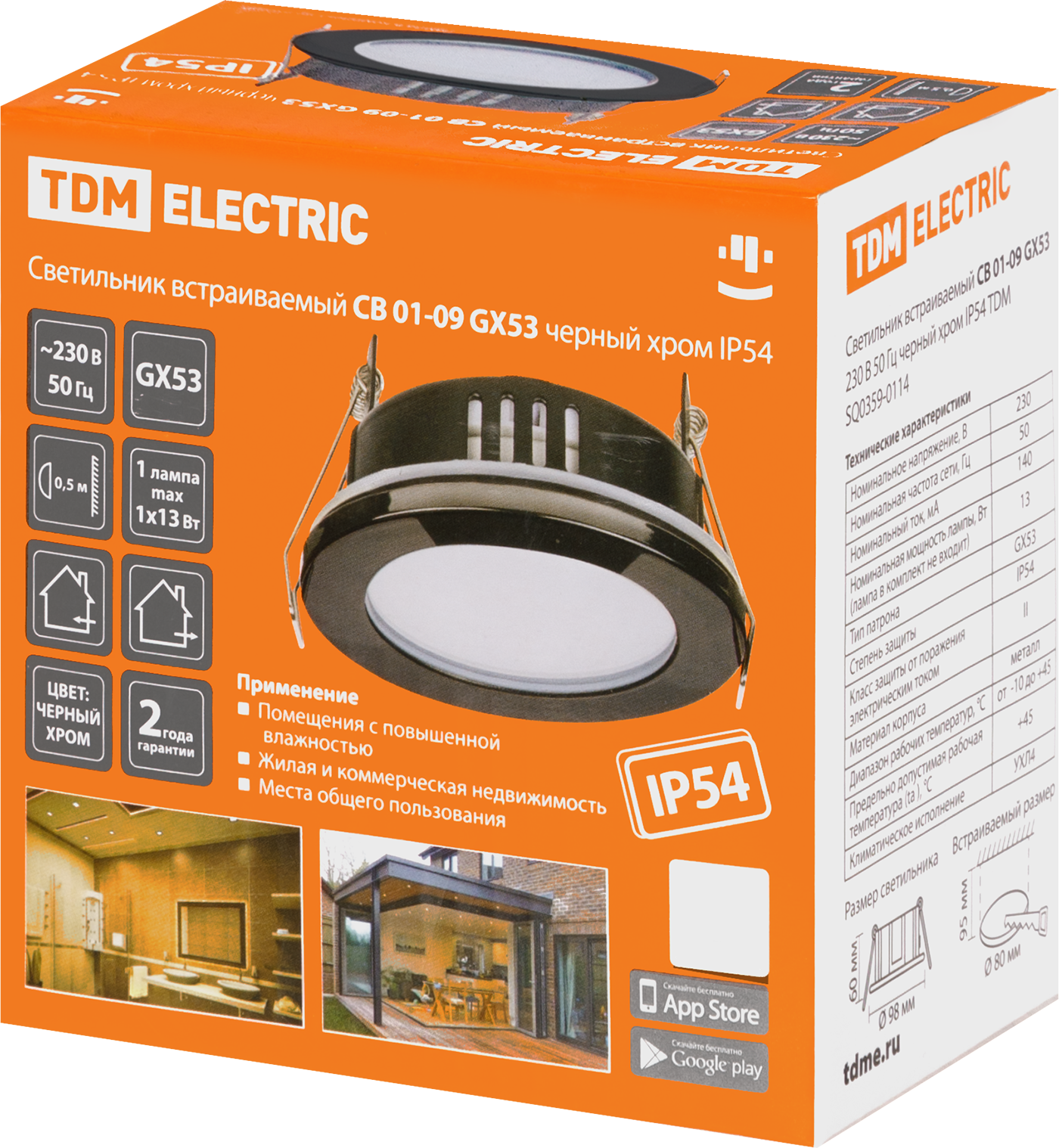 | Дополнительная информация | Светильник точечный встраиваемый влагозащищенный TDM Electric SQ0359-0114 под отверстие 80 мм 4 м² цвет черный |