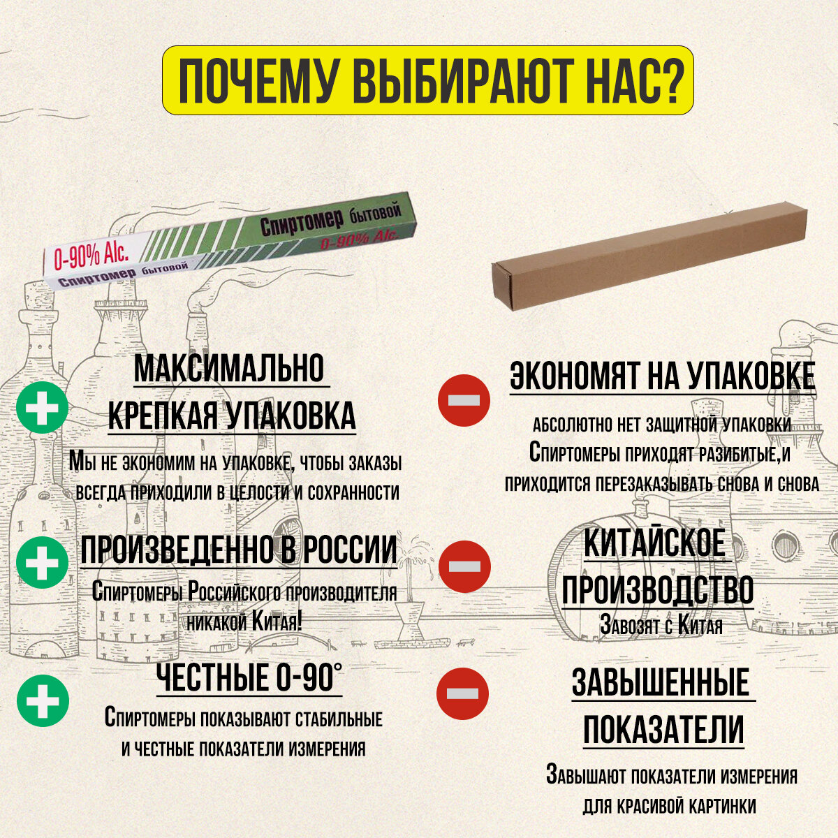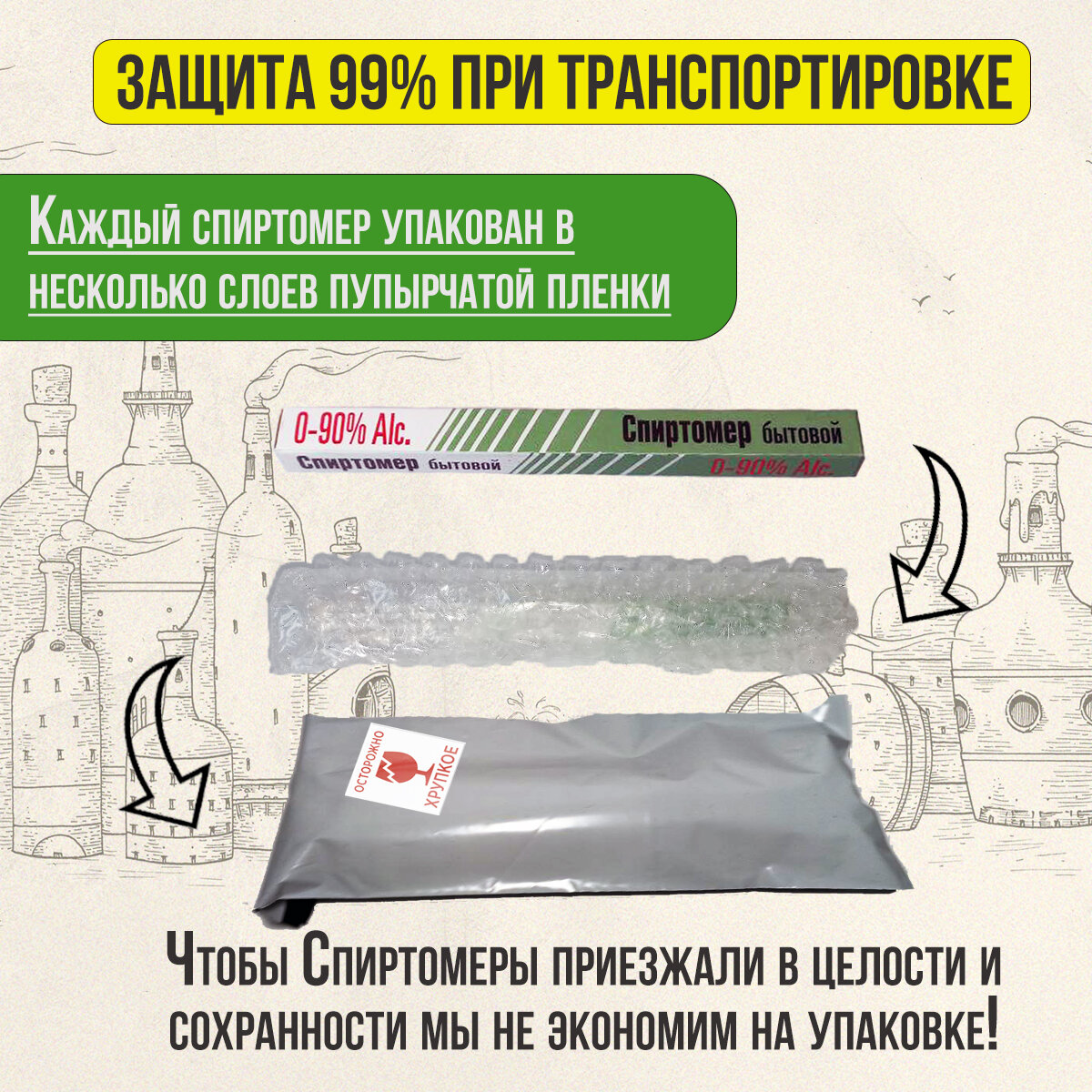 | Подробная комплектация | Спиртомер 0-90°, Спиртомер рюмочный 0-80°, виномер 0-25% сахара, 0-12° |