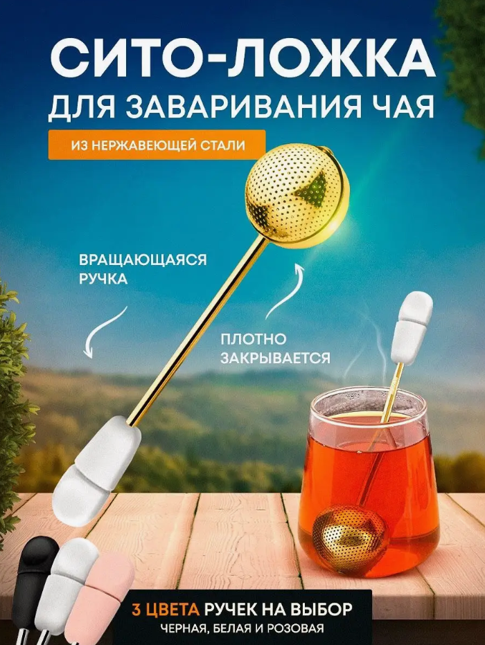 Ситечко (Золото-Белый) для заваривания чая в кружке / сито ложка для чая / сито для заварки интересное: