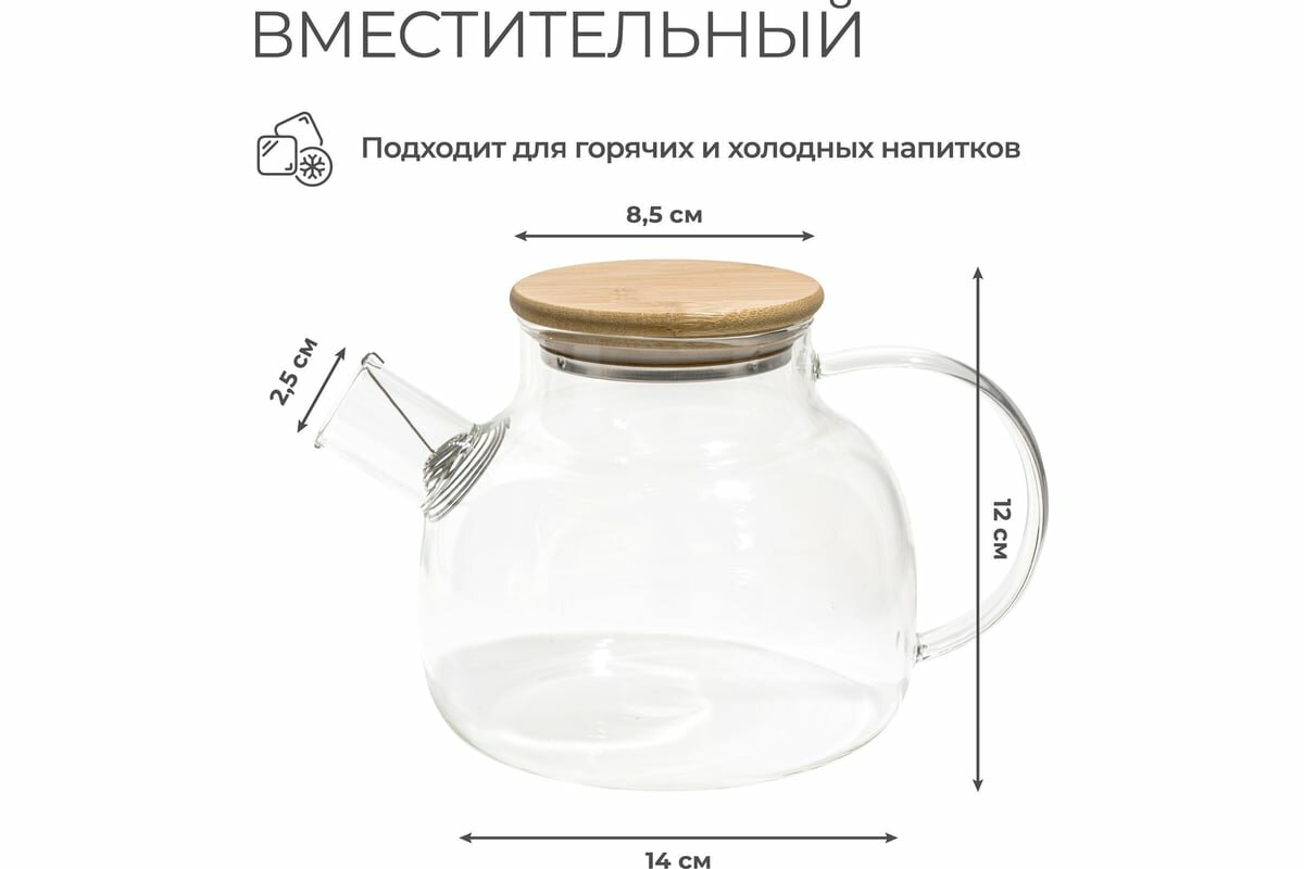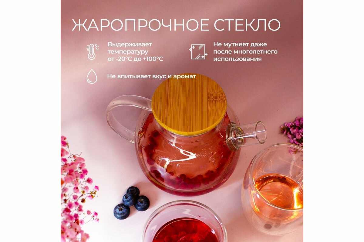 Чайник заварочный стеклянный Unifico с бамбуковой крышкой 1000 мл. интересное: