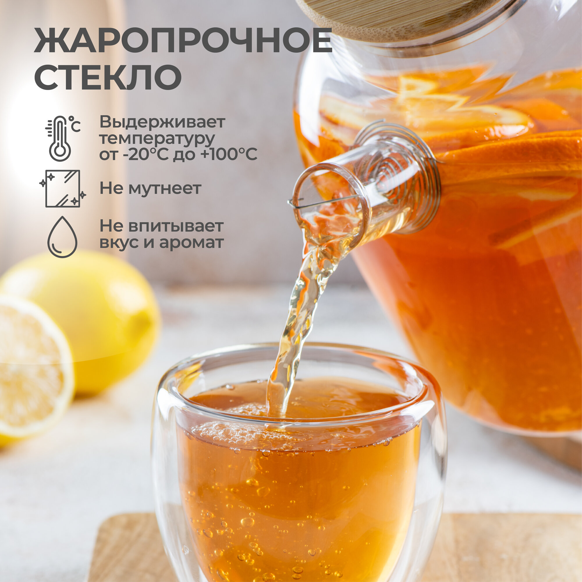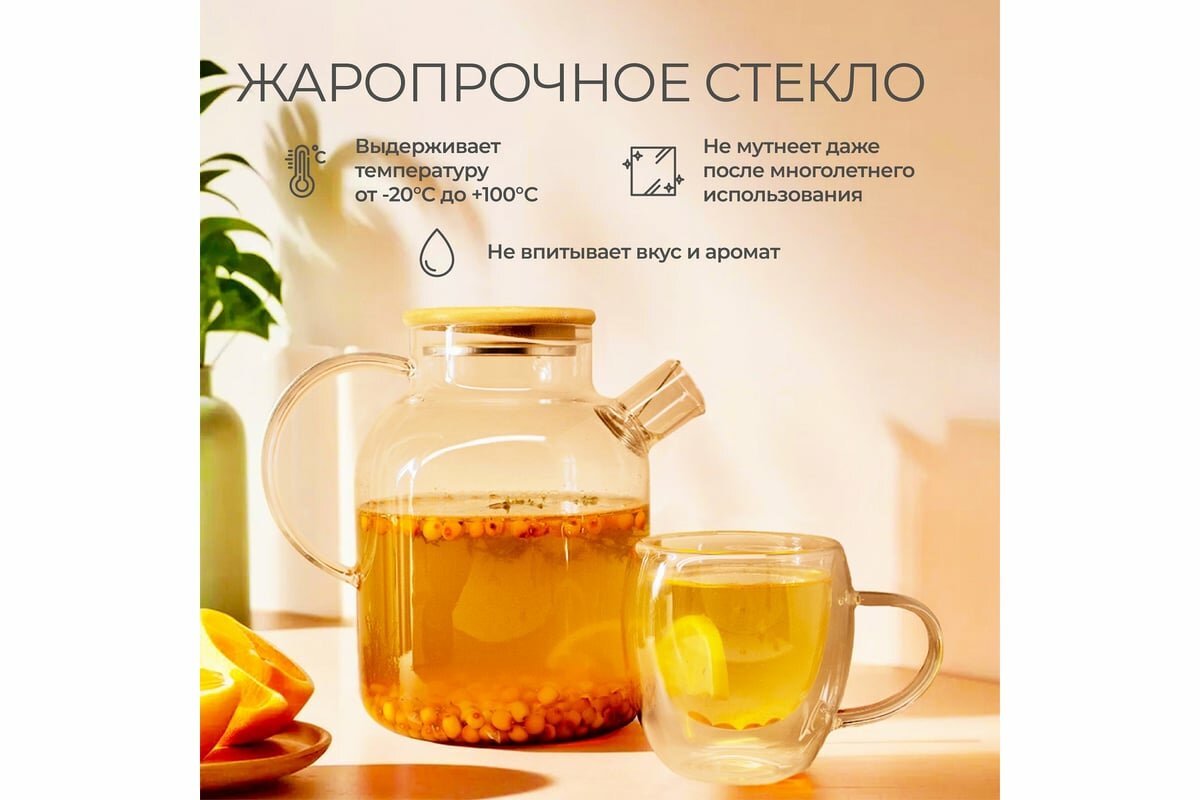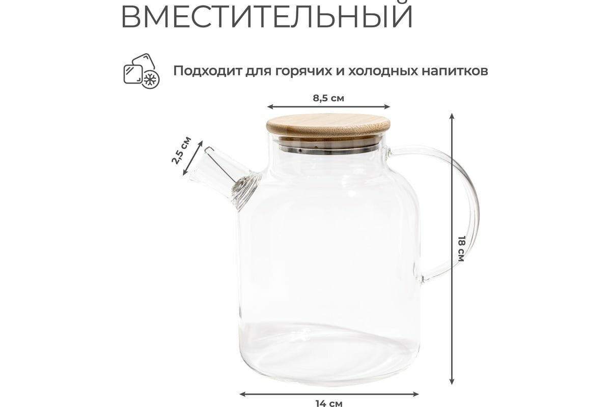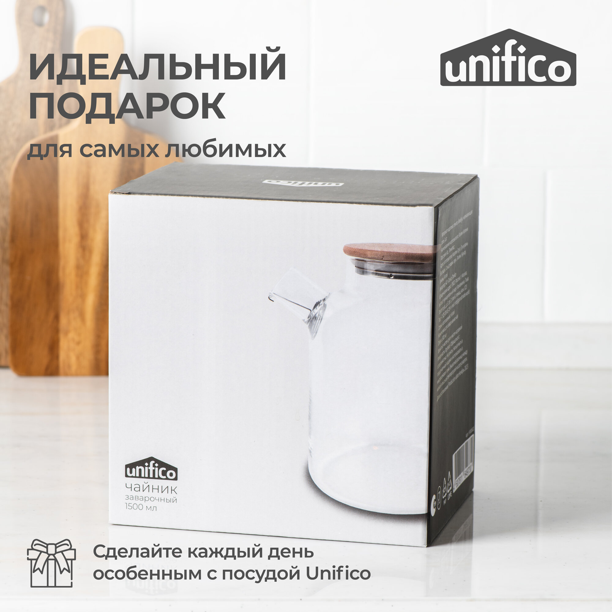 Чайник заварочный стеклянный Unifico с бамбуковой крышкой 1500 мл. интересное: