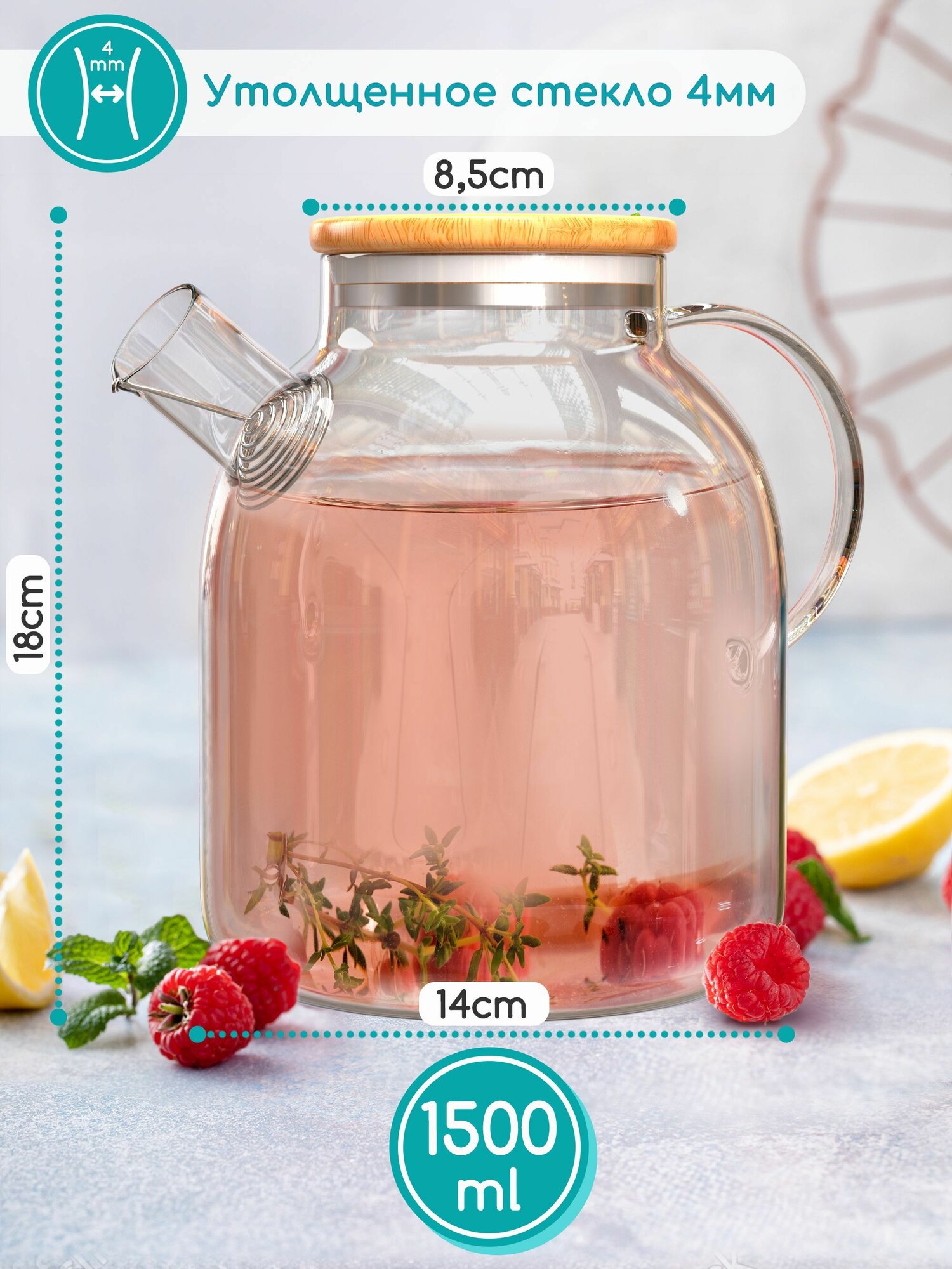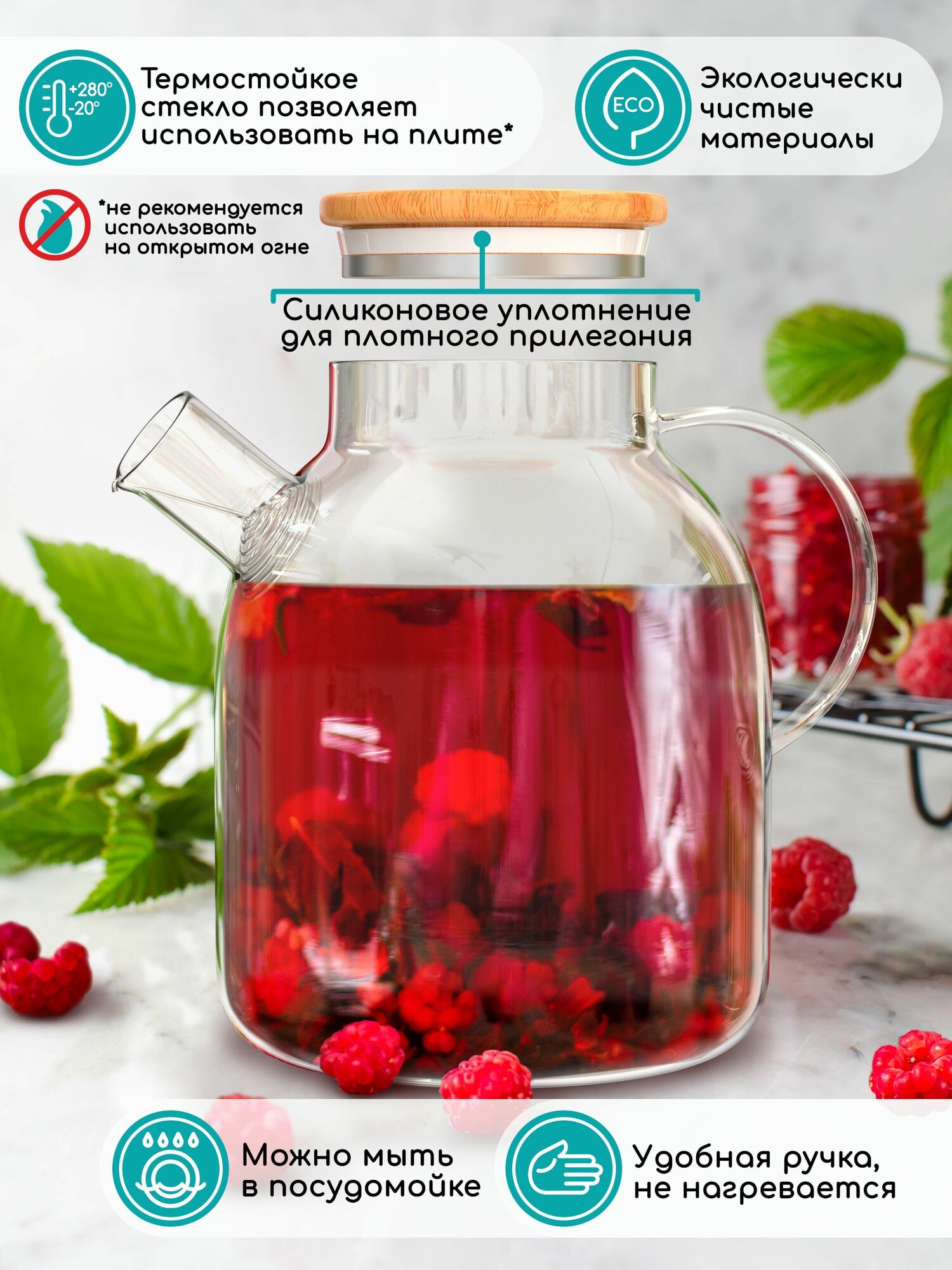 Чайник заварочный стеклянный с фильтром и крышкой, LockSar, 1500мл интересное: