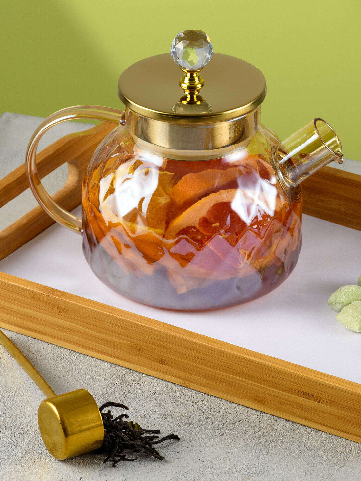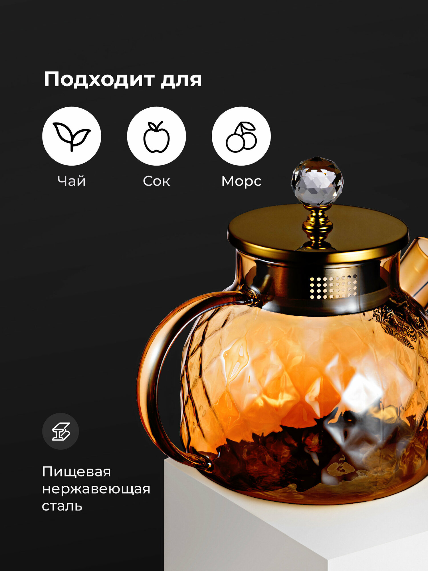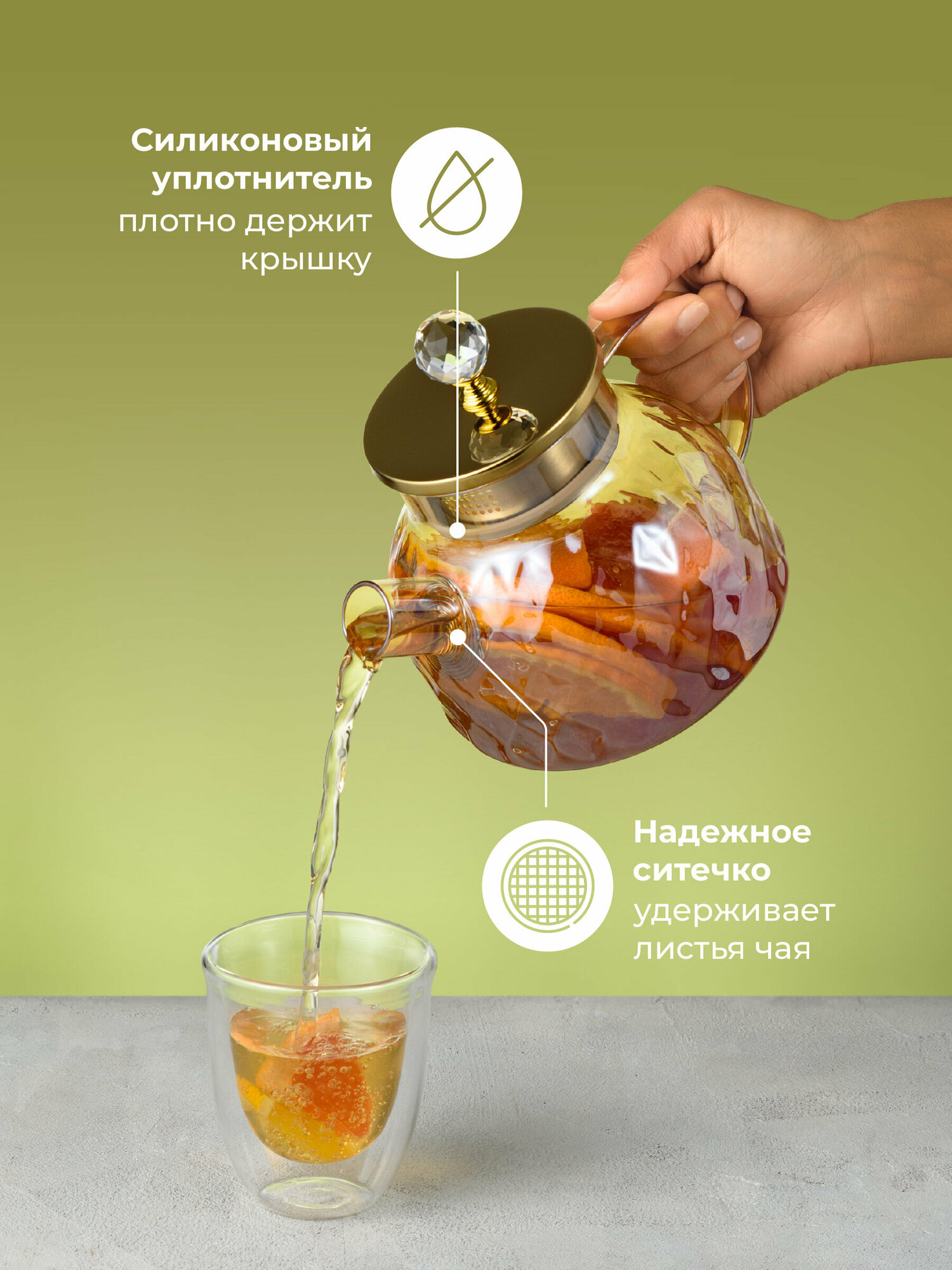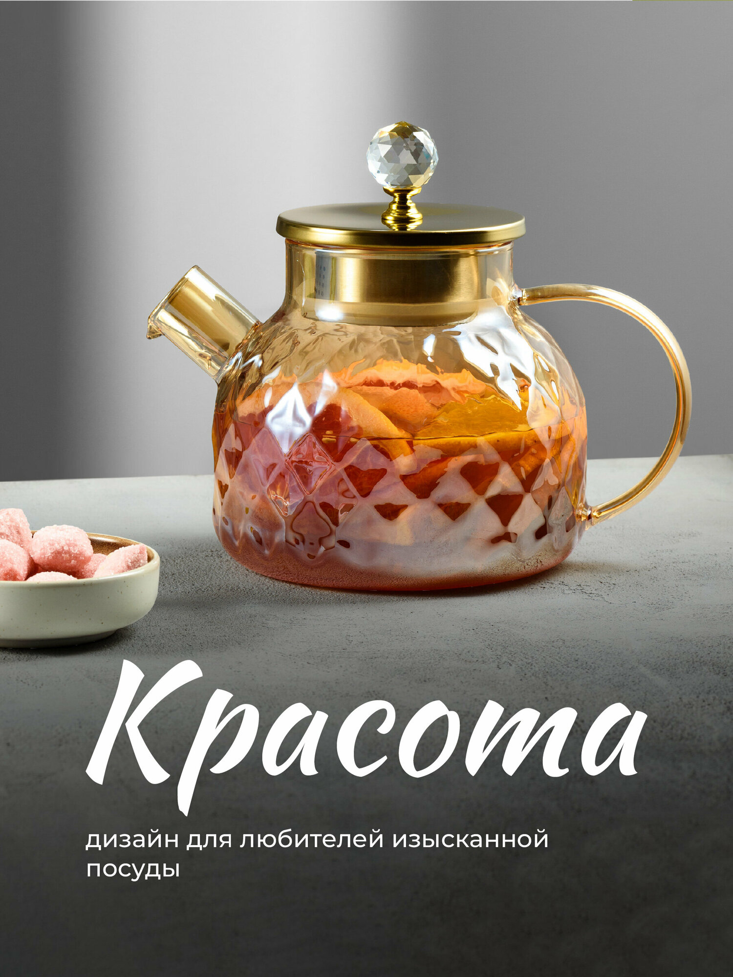Чайник заварочный стеклянный с ситечком, Limpid Side, Заварник для чая жаропрочный прозрачный, 1 л интересное:
