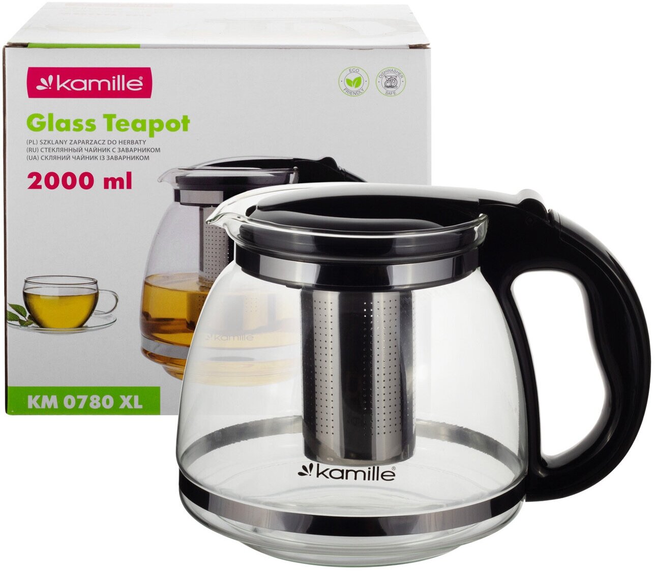 Стеклянный заварочный чайник 2000 мл. Kamille KM 0780XL со съемным ситечком (2 л. / прозрачный) интересное: