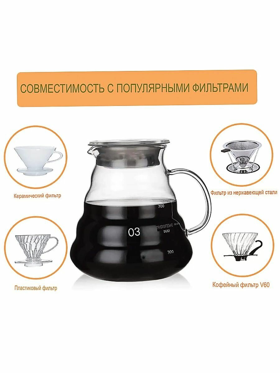 Чайник сервер из стекла, кофейник жаропрочный 800 мл. интересное: