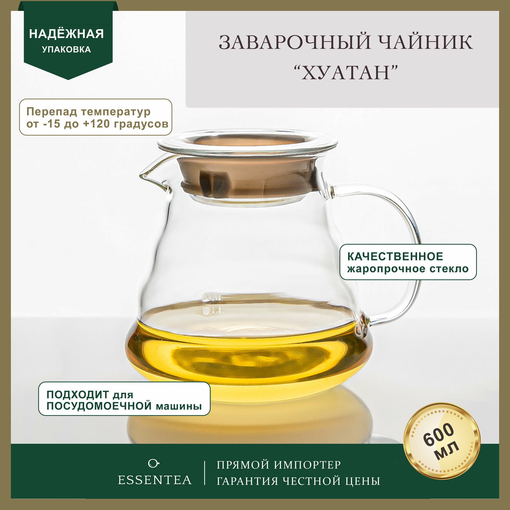 Essentea / Чайник заварочный стеклянный "Хуатан" без колбы 800 мл, для чая кофе сока лимонада