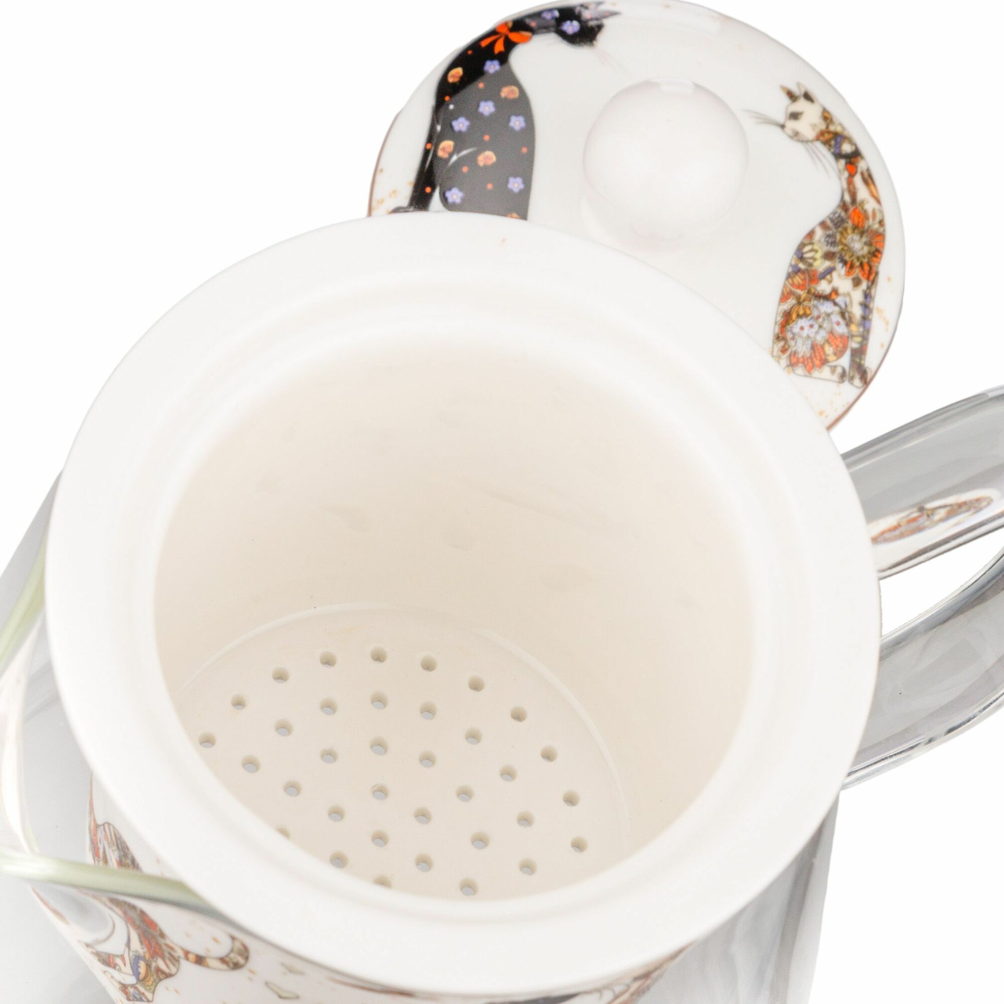 Чайник заварочный стеклянный с фарфоровым ситом Lefard "Парижские коты" 400 мл