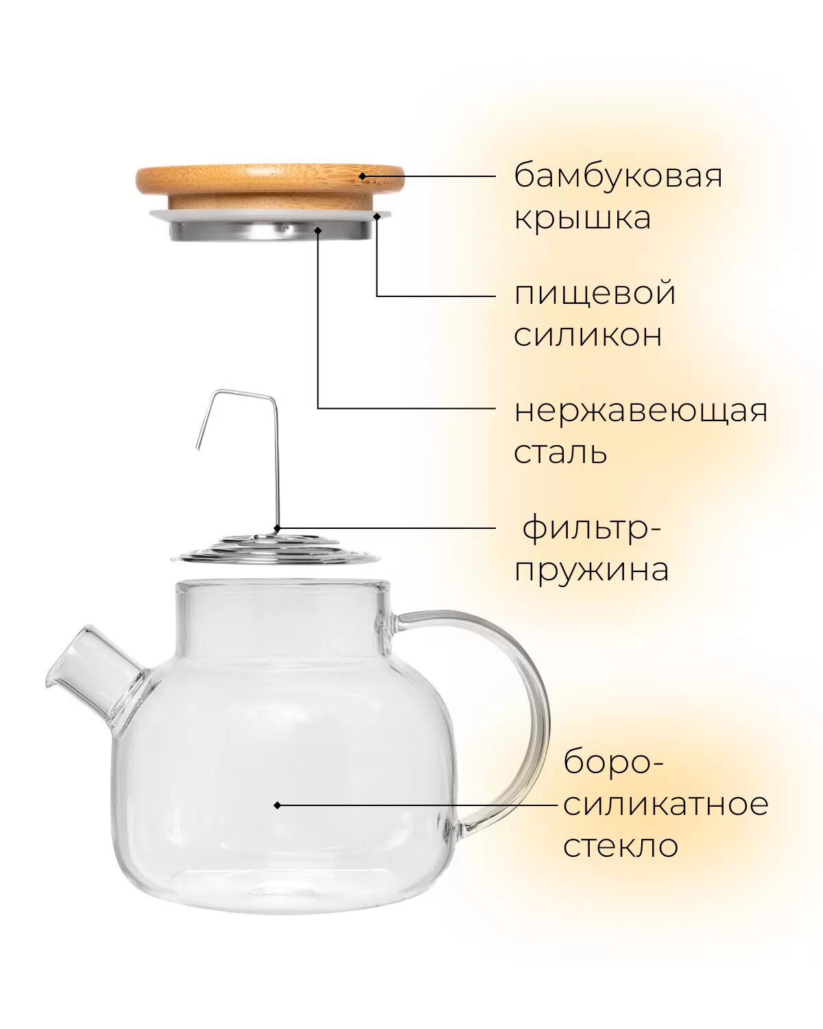 Чайник заварочный 1 л стеклянный с бамбуковой крышкой интересное: