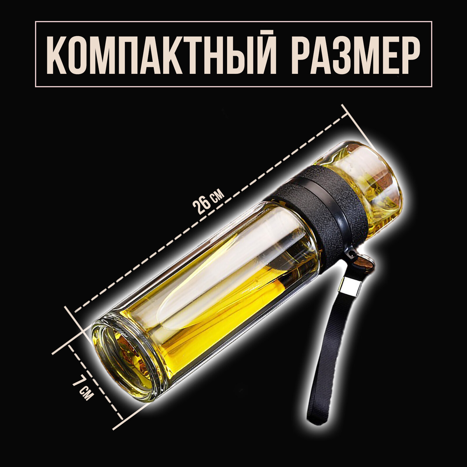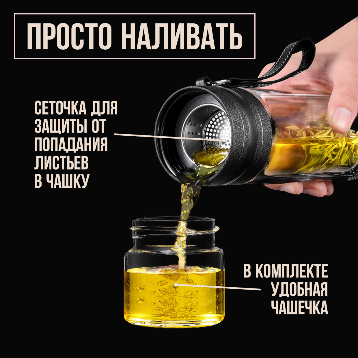 Бутылка для заваривания чая с чашкой и стеклянной колбой / термос заварочный для чая с двухслойным утолщением / 450 мл интересное: