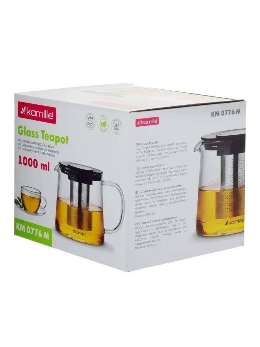 Ниже Вы можете прочитать отзывы на Стеклянный заварочный чайник 1000 мл. Kamille KM 0776M со съемным ситечком (1 л. / прозрачный), ознакомится с подробными характеристиками, посмотреть интересные обзоры и фотографии на Стеклянный заварочный чайник 1000 мл. Kamille KM 0776M со съемным ситечком (1 л. / прозрачный).