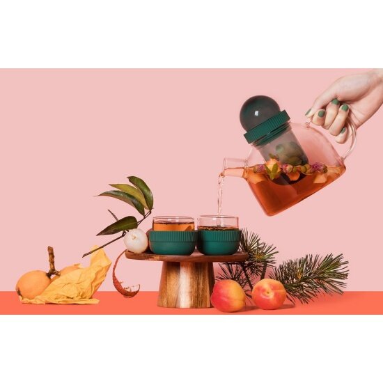 Заварочный чайник и две чашки KissKissFish BoogieWoogie Teapot with cups (зелёный)