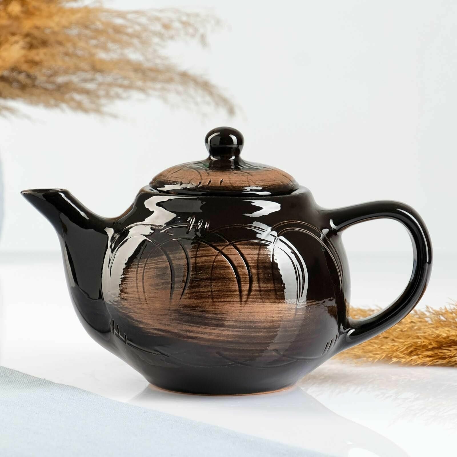 Чайник "Уют" с вкладышем, 1л / 14х15,5см, старина интересное: