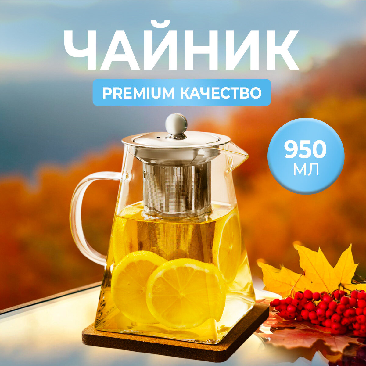 Купить Чайник заварочный стеклянный 950мл