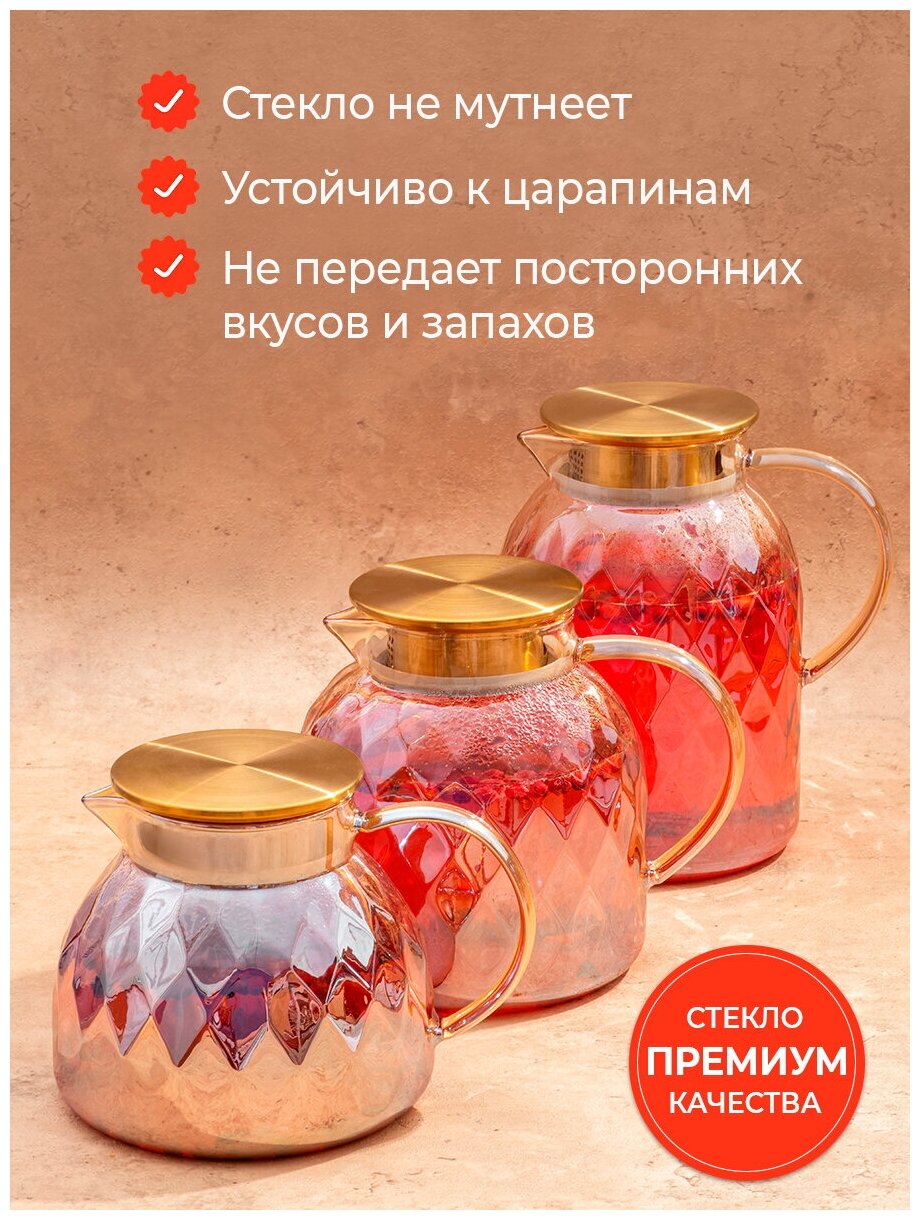 Чайник заварочный Karpee Home из жаропрочного стекла с фильтром в носике, 1,8 л