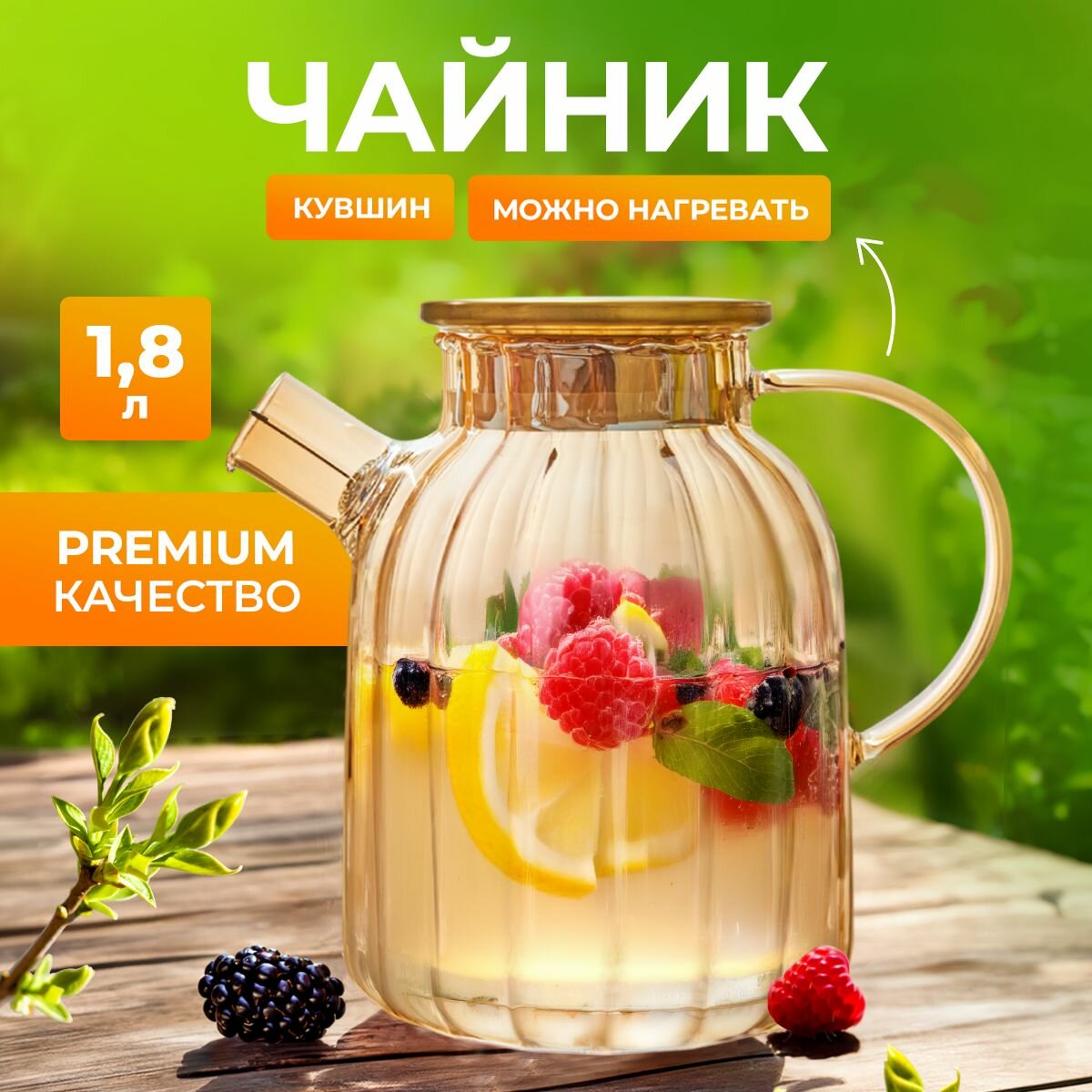 Чайник стеклянный заварочный из жаропрочного стекла, 1.8 л