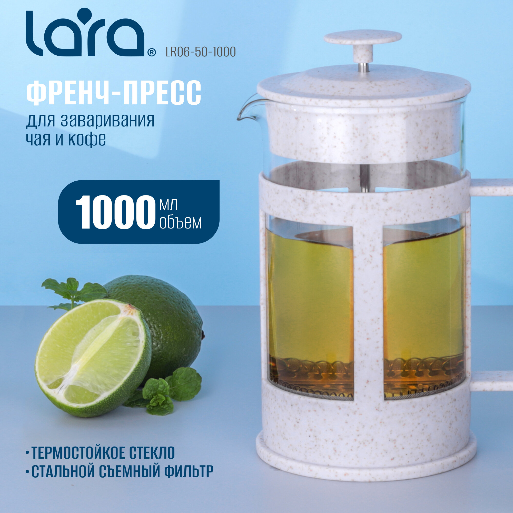 Френч-пресс LARA LR 06-50-1000 (1 л),1 литр, 1000 мл, заварочный чайник для чая, кофе, чайник, кофейник, кухонная утварь