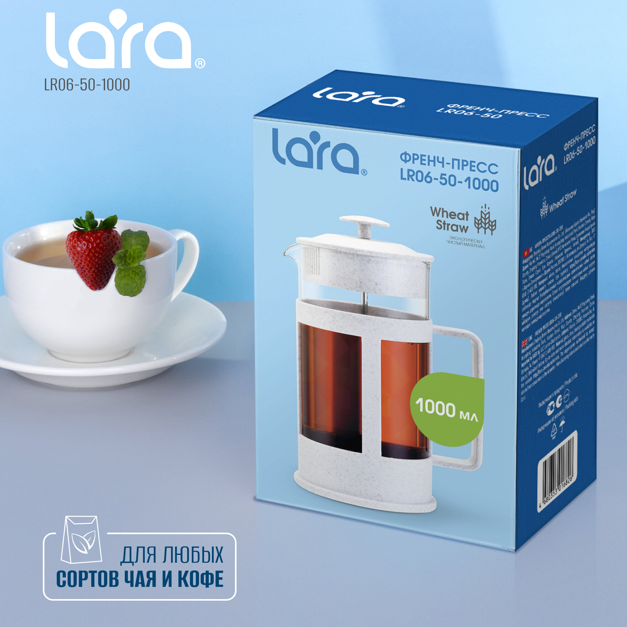 Купить Френч пресс для чая LARA LR06-50-1000 - белый/прозрачный 1 л