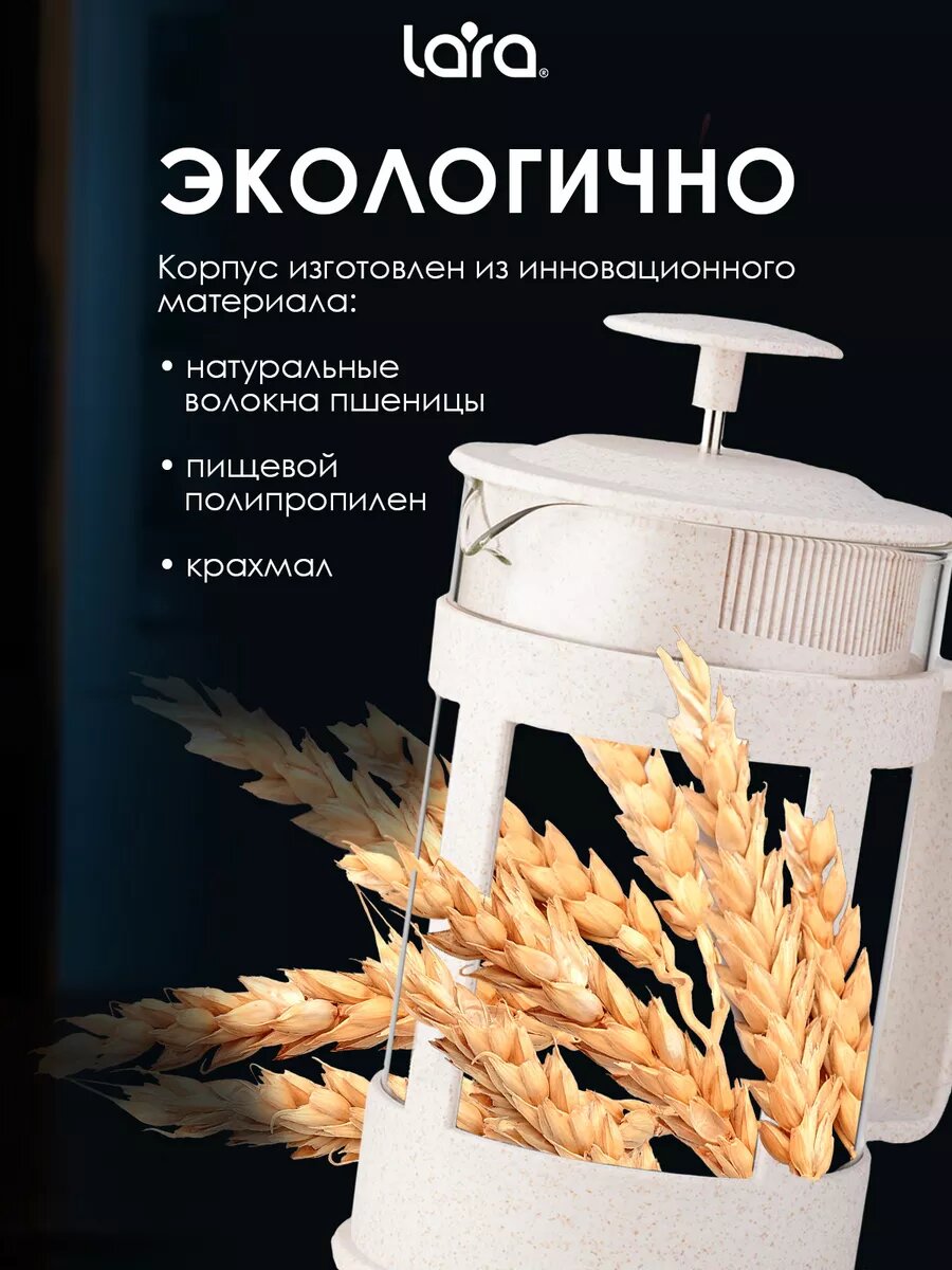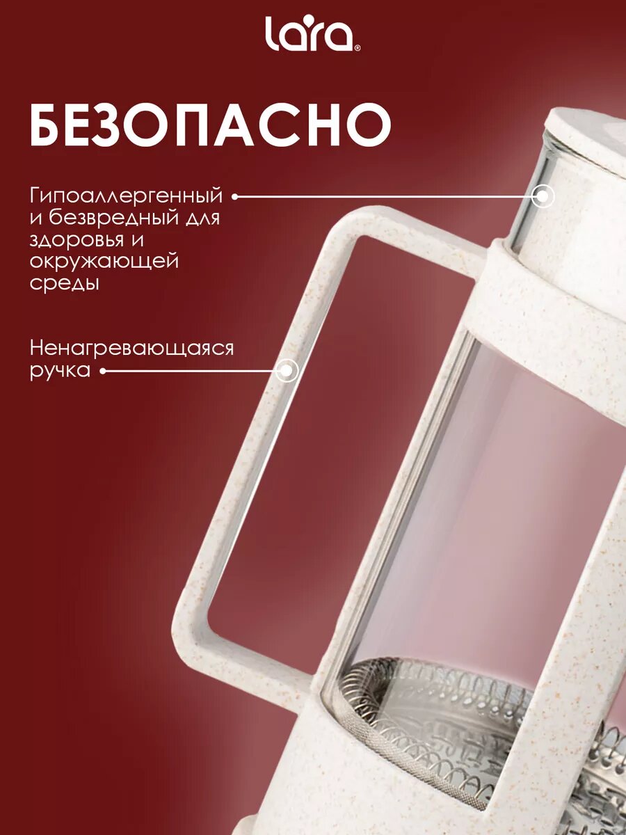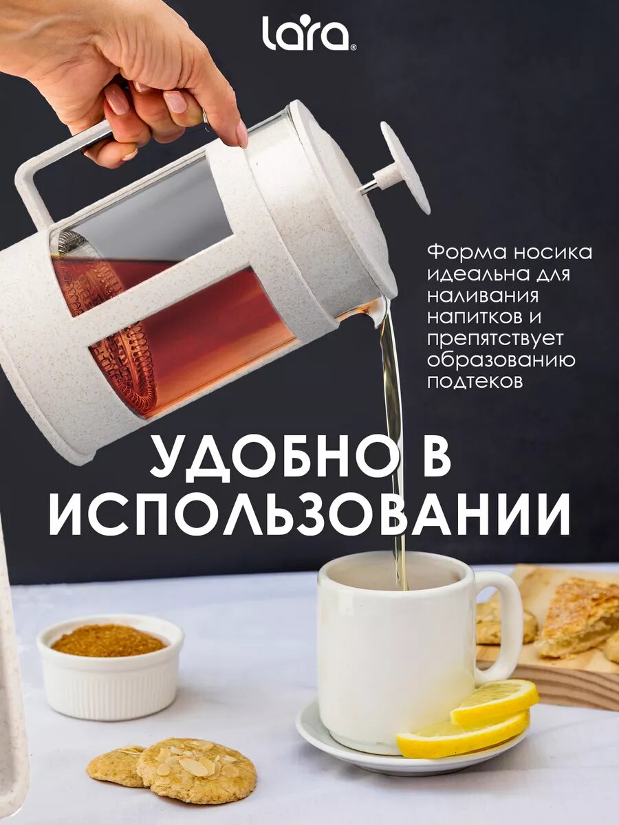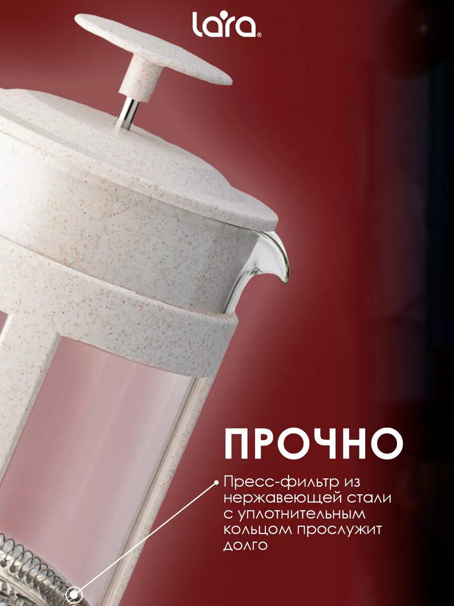Френч-пресс 0,8 л LARA LR06-50-800, бежевый, стекло/пластик