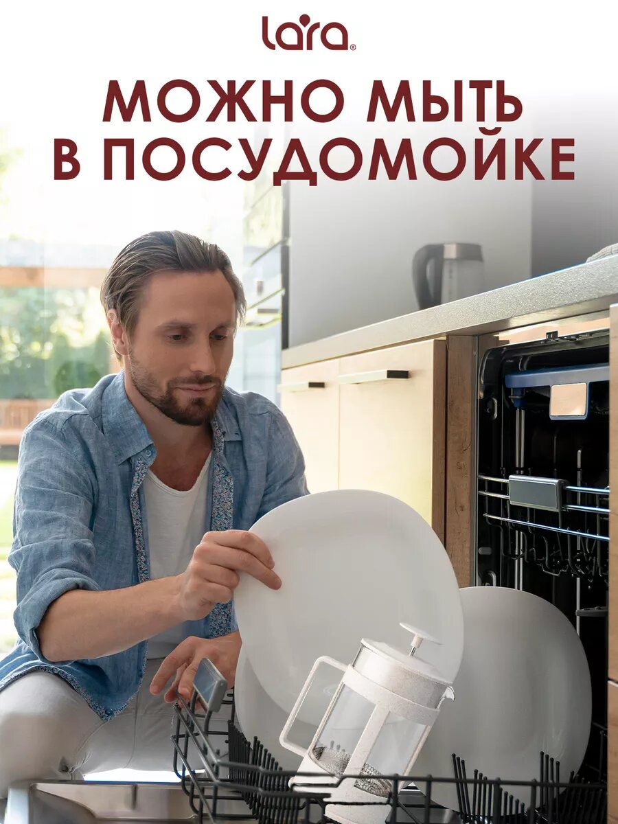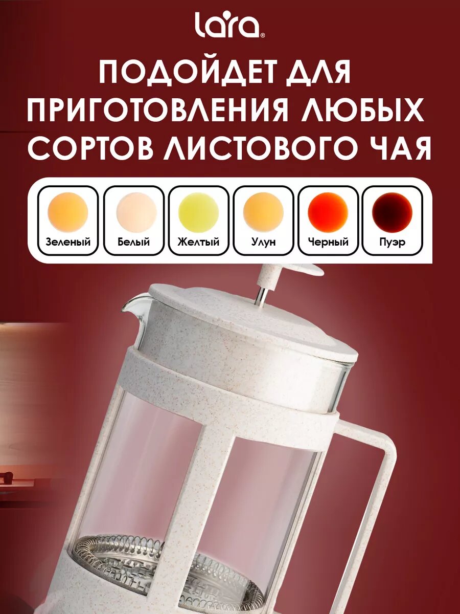 Чайник заварочный френч-пресс LARA / лара LR06-50-350 белый, гипоаллергенный, ненагревающаяся ручка 0.35л / посуда для чая