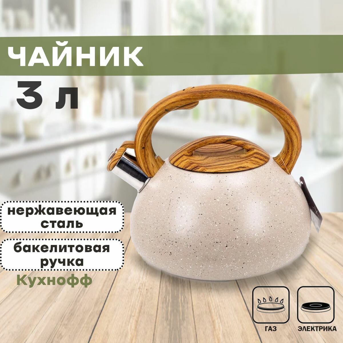 Чайник со свистком 3 л AK-522 бежевый интересное: