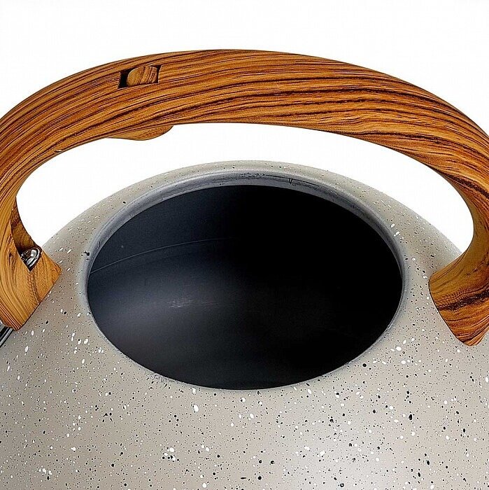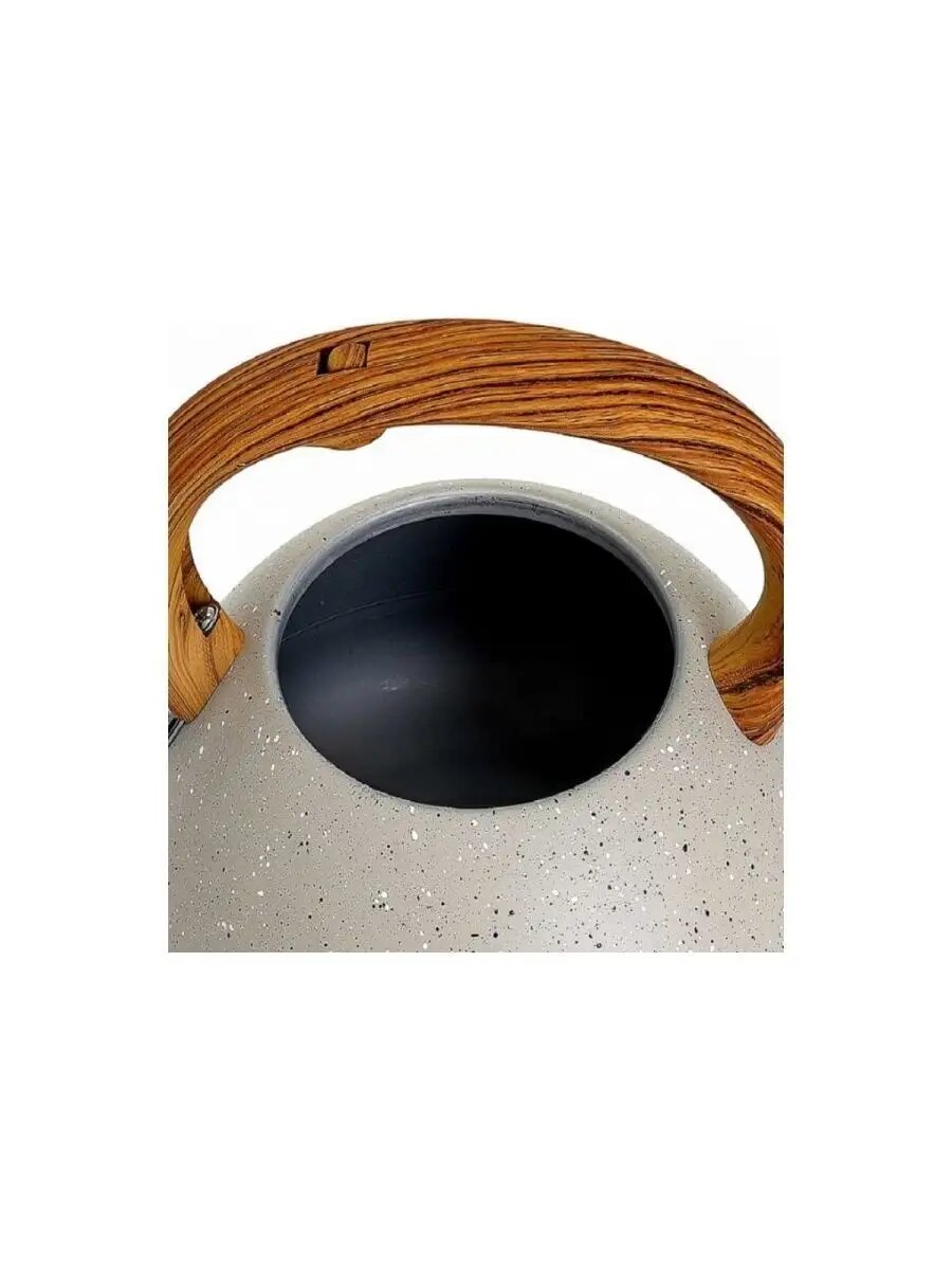 Чайник 3 л из нержавеющей стали со свистком, индукционное дно ALPENKOK AK-536 коричневый гранит, ручка темное дерево