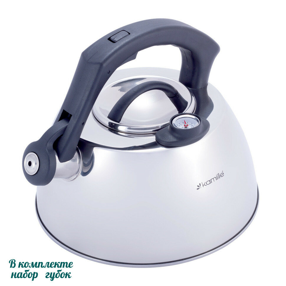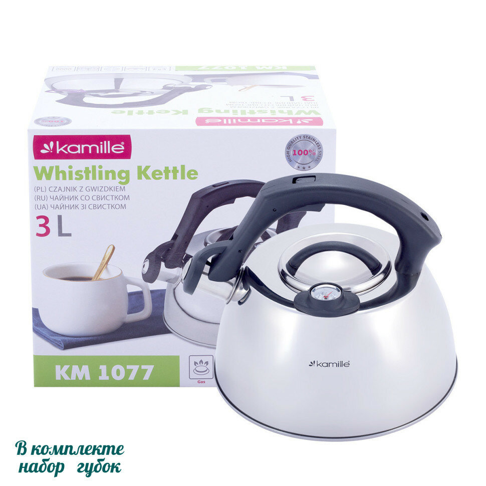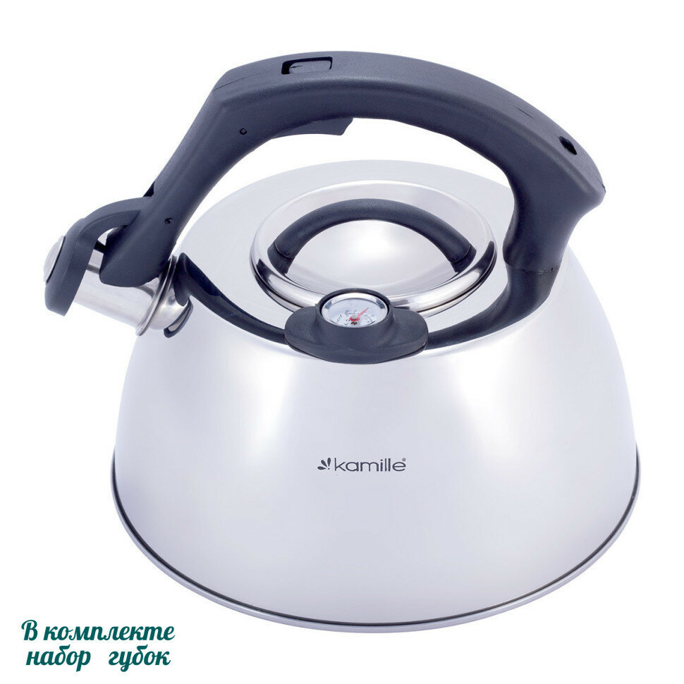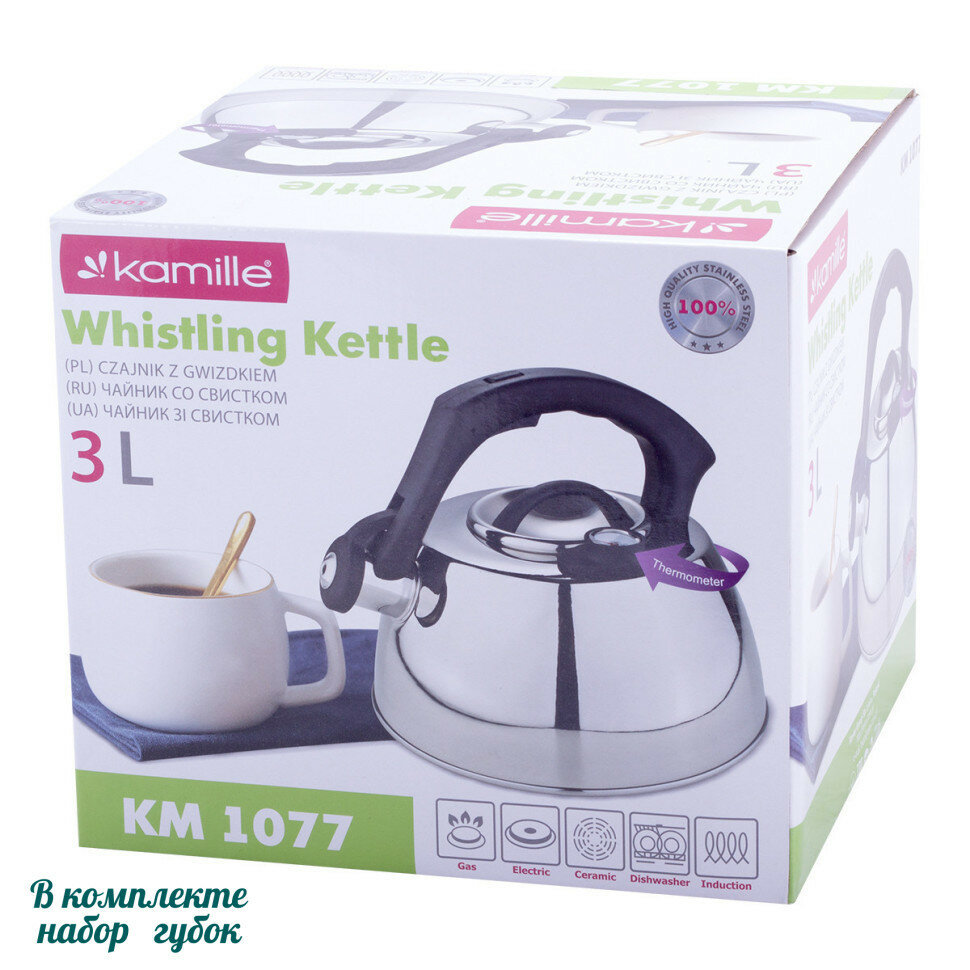 Чайник 3л из нержавеющей стали со свистком и термометром Kamille 1077A